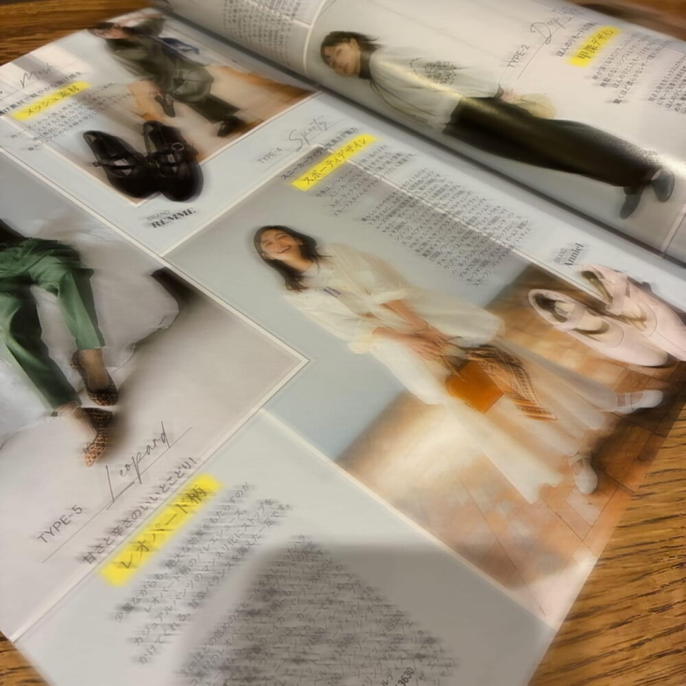 他のページも、ぱっと気分が華やぐようなトップスやパンツ、小物が満載でした。