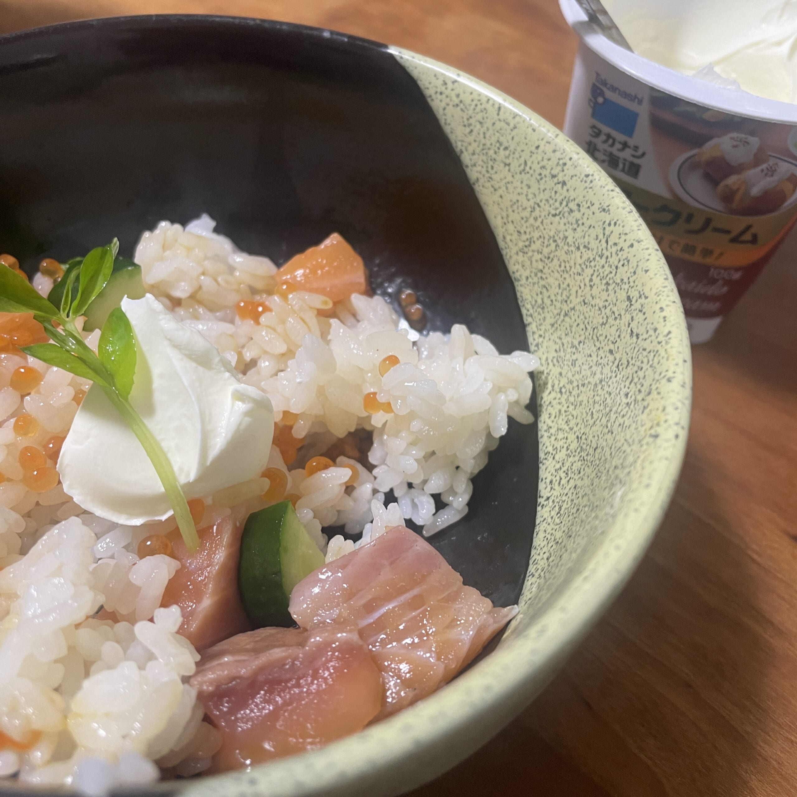 サワークリームをのせることで、いつもと違った味わいに!洋風のちらし寿司になり、味変できます。