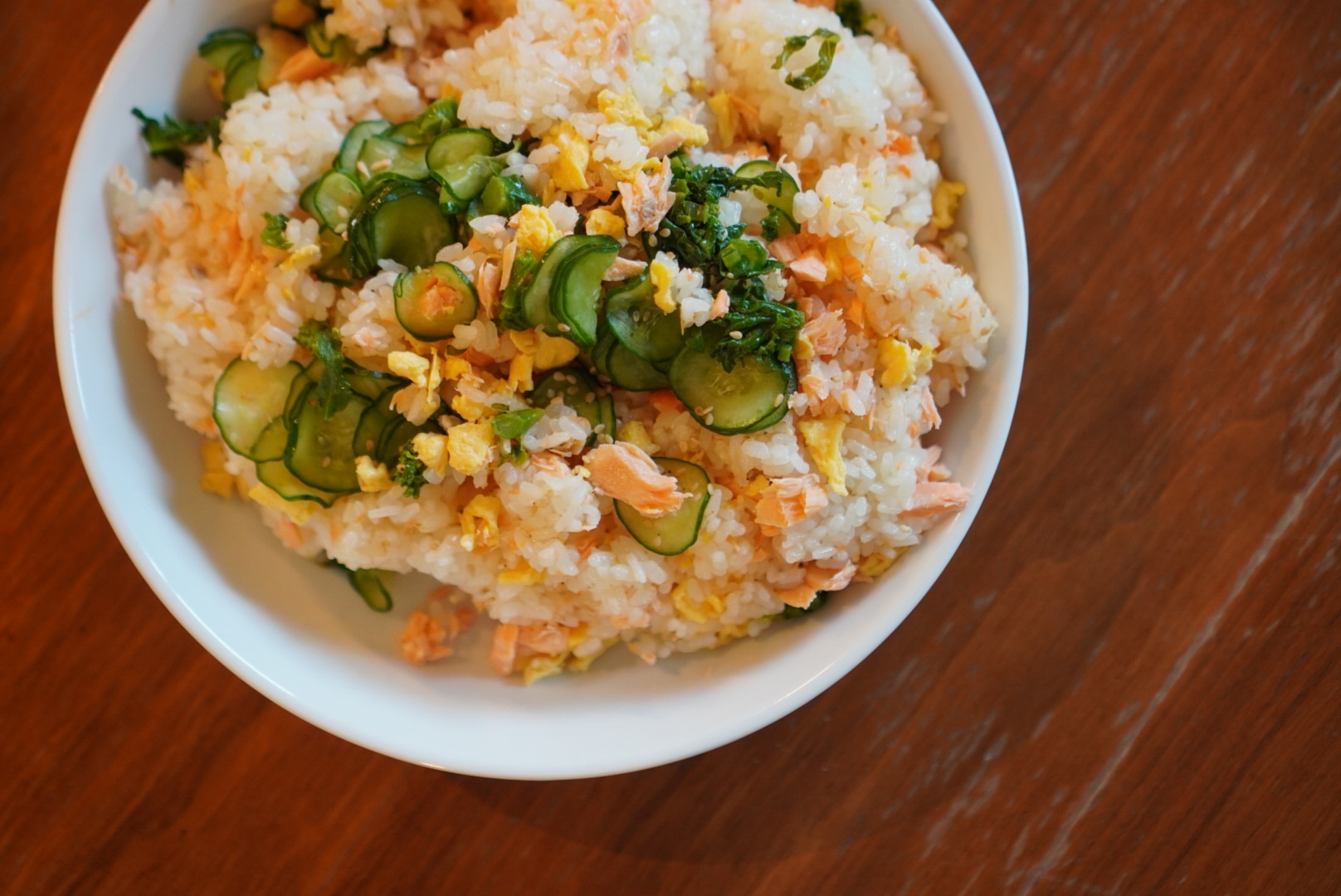 鮭と卵の優しい味と、ポリポリのキュウリの組み合わせがたまらない!