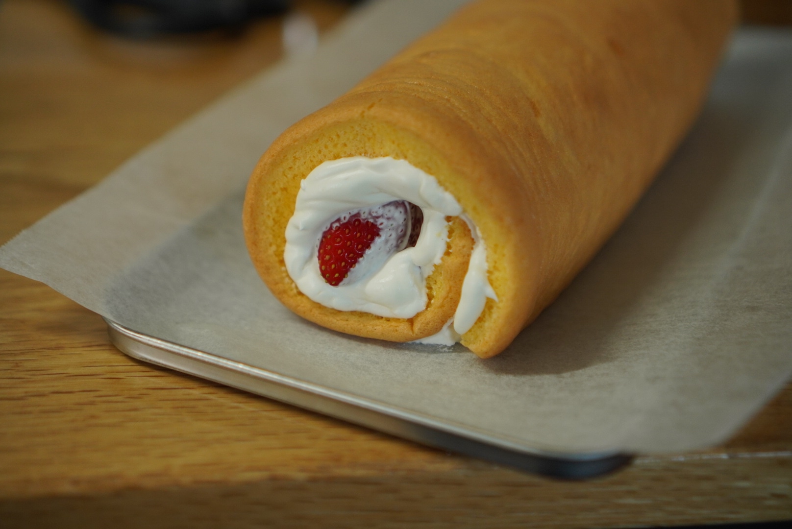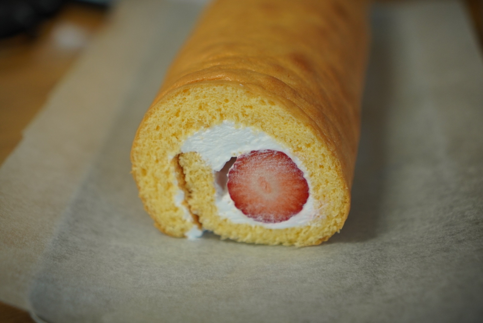 ということで、毎年娘と楽しんでいるケーキですが、今年は苺のロールケーキをつくりました。