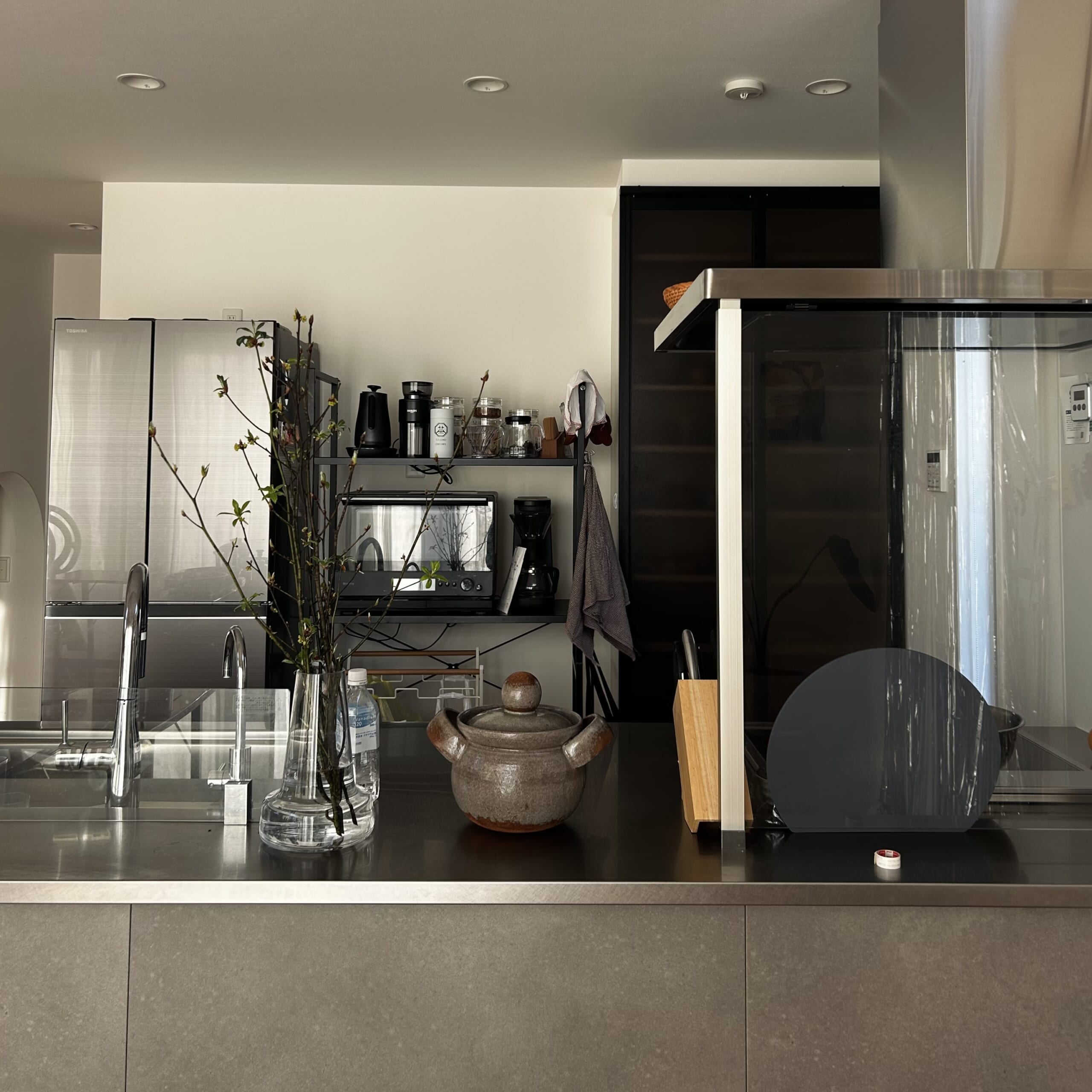 赤土の絶妙な色味が好みで、キッチンとの相性抜群!初日からバッチリ馴染んでおられます。