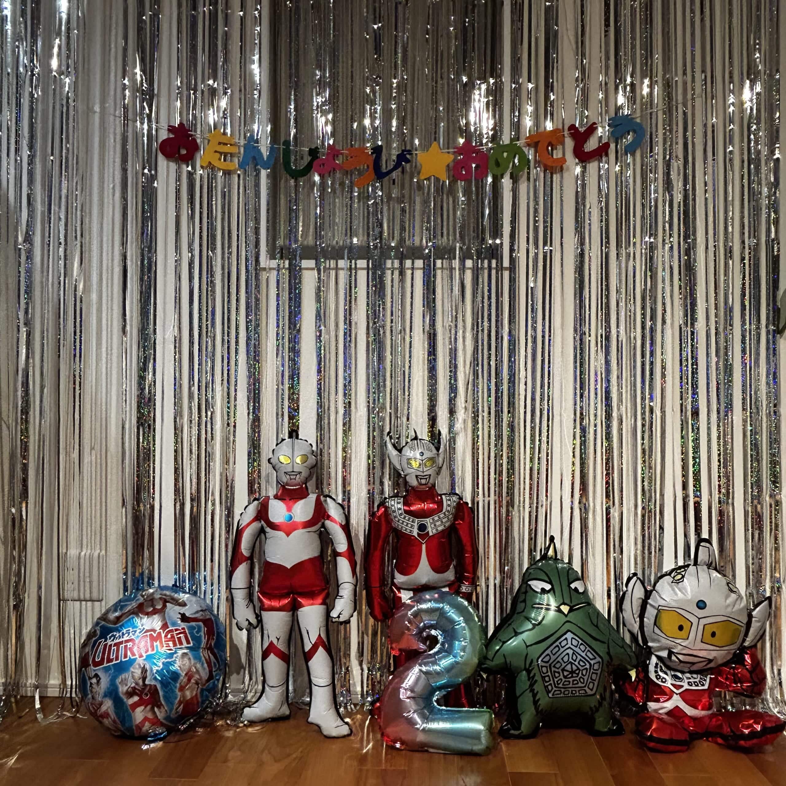 飾り付けは、長男の影響でハマっているウルトラマン。当日の朝、起きた瞬間に見て欲しくて、次男の喜ぶ顔を思い浮かべながら夜な夜な準備をしました。