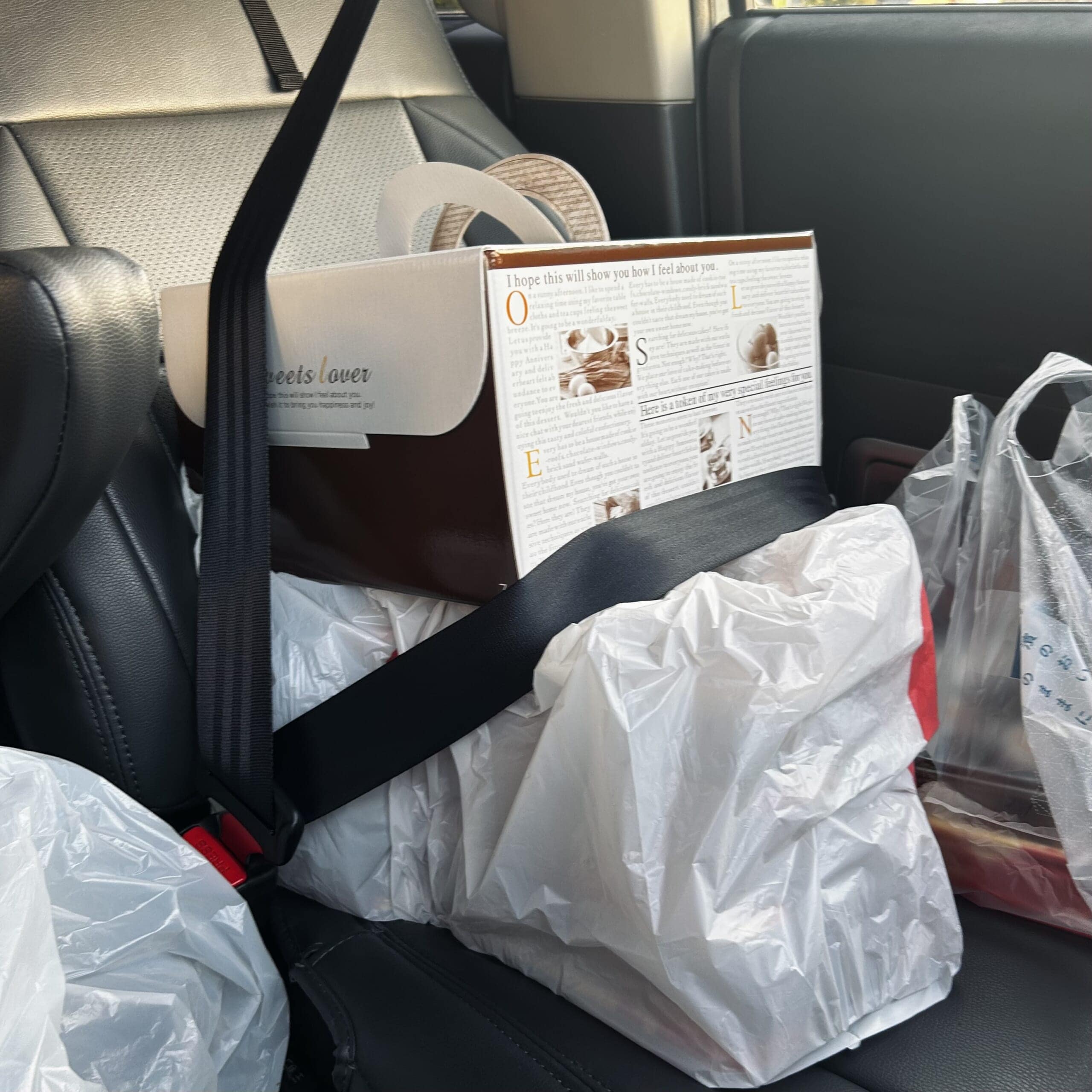 お誕生日ケーキは義母からのプレゼントだったので、シートベルトをかけて大切に運びました♪