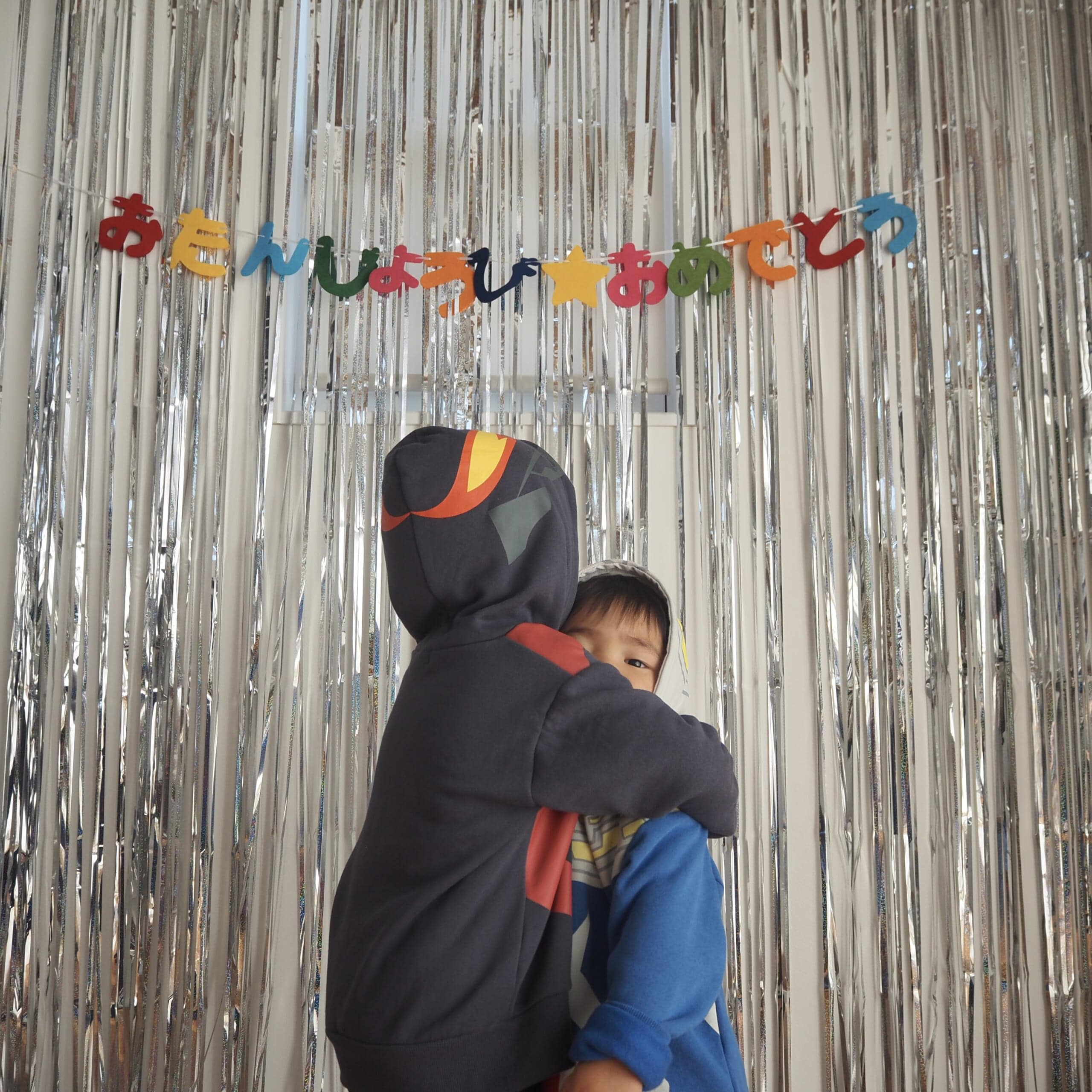 朝、次男が寝ぼけながら飾り付けを見た瞬間の表情が忘れられません(笑)まだ「お誕生日」というイベント事が嬉しいことなのか、何なのか理解していないので微妙な表情でしたが、大好きなウルトラマンがいるので1日中はしゃいでいました♪