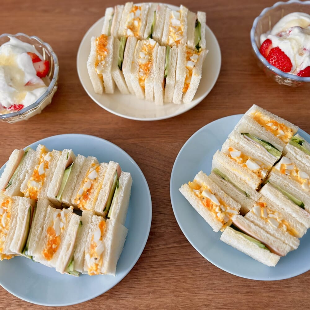 次の日の朝食は、サンドイッチにしました。噛み応えのあるパンが主流なドイツ、どうしようかな、と悩みましたが、これも日本の家庭の味ということで。