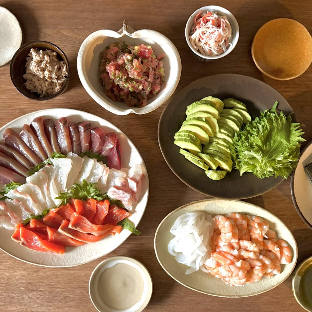 日本での食事をとにかく楽しみにしていて、手巻き寿司がとくに好き、と聞いたので夕食は手巻き寿司に。この日は妹家族も引率がてら一緒に食事をすることになっていました。甥っ子たちも、手巻き寿司は大好き!