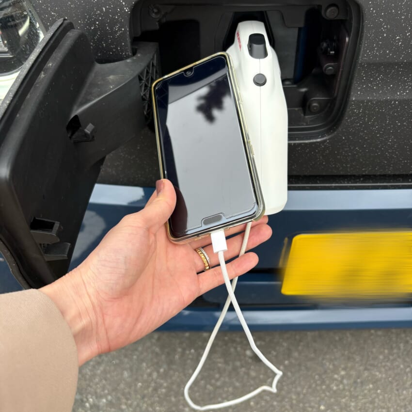 ということで早速、スーパーの駐車場で充電してみました!