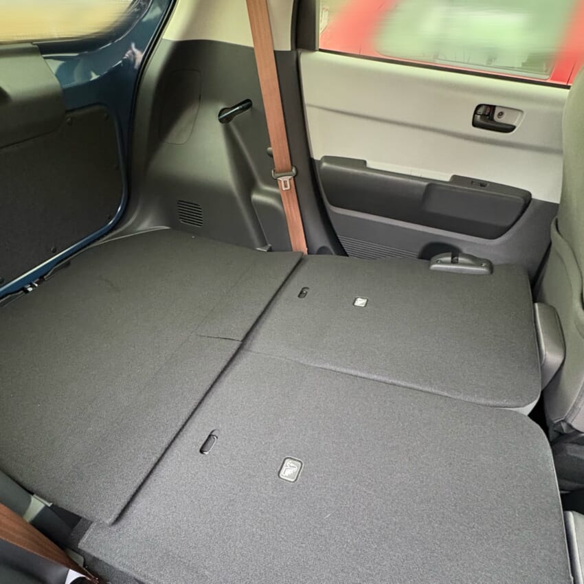 またもっと大きなものを載せる時は、後ろのシートを倒せばさらに広々としたトランクになりますし、