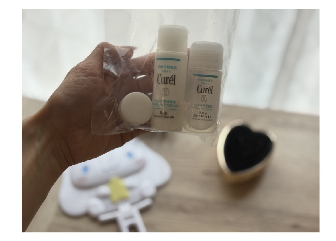 近くのドラックストアでは、キュレルのお試しキャンペーン中だったので、こちらのトラベルセットも一緒についていました。