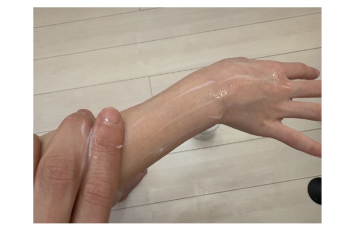 ギトギトした感じがなく、多少クリーム特有のベトつきはあるものの、油ぎった感じはありませんでした。なので、全身に塗った後、肌着や部屋着を着る際に、あまり油分が際立たないので使いやすいです。
