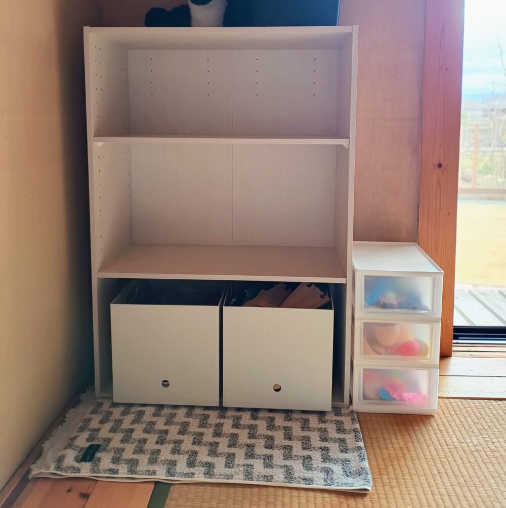 実家に仮住まい中のため、そもそもおもちゃや本を置く場所が決まっておらず