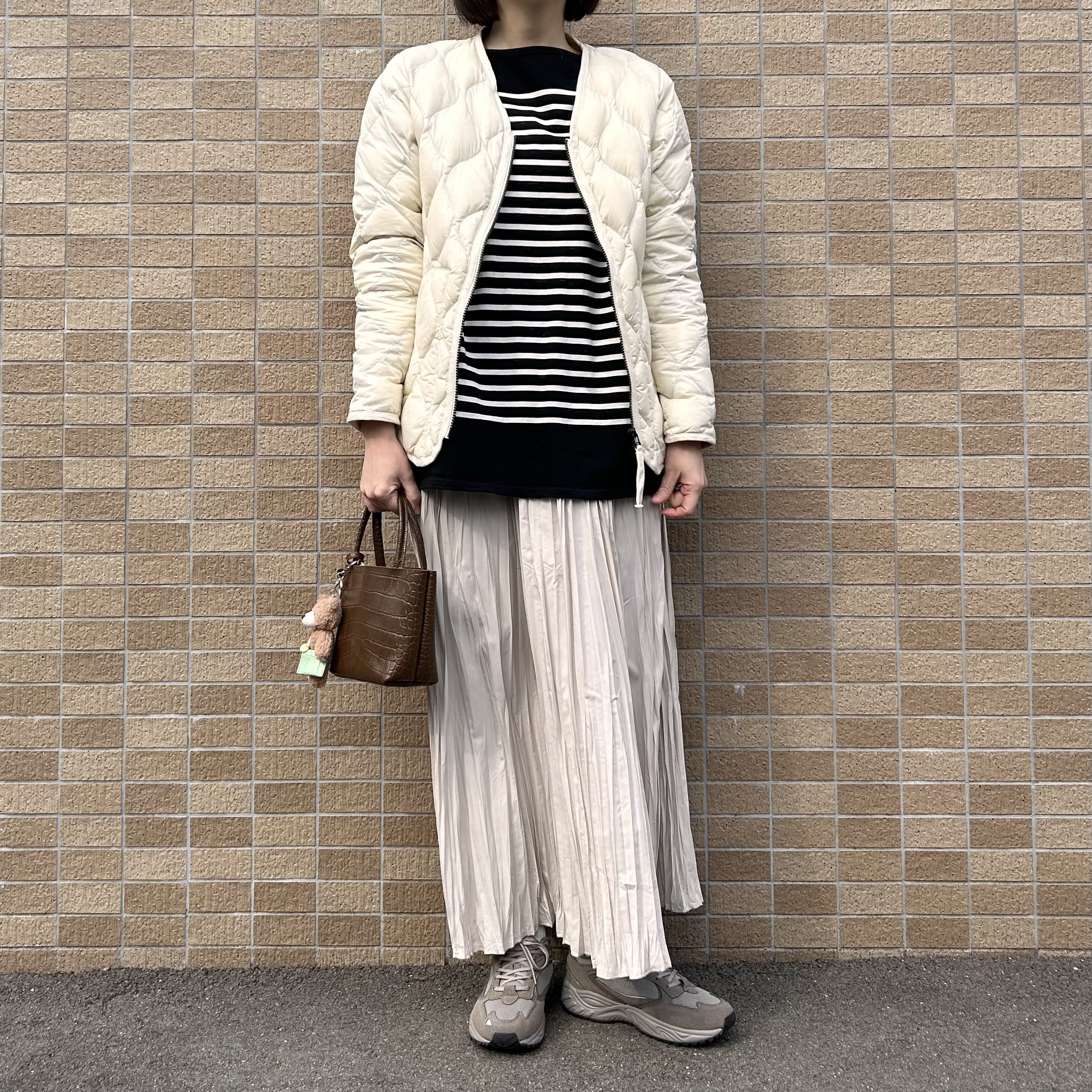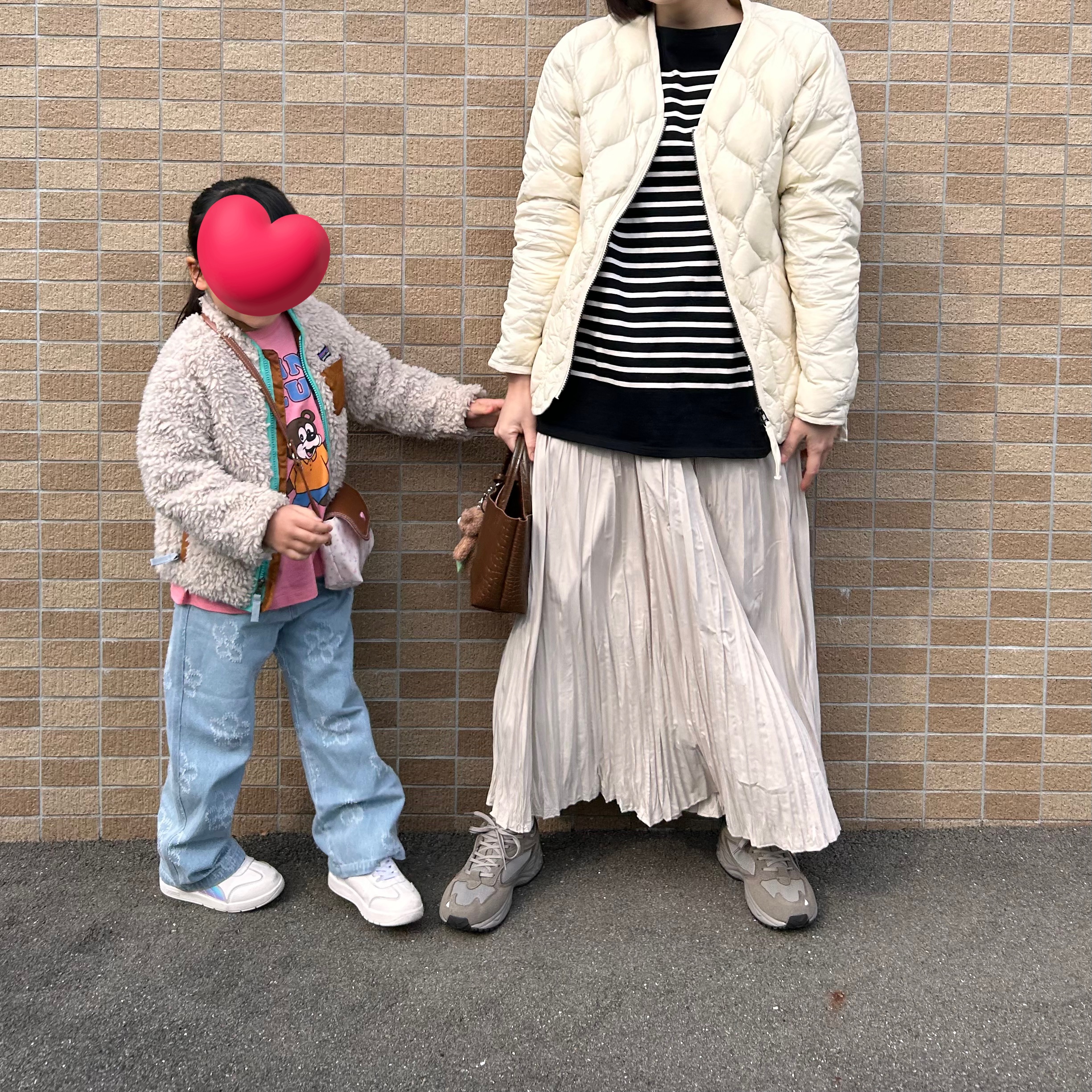 スカートとスニーカーの色を合わせて、春っぽく(?)明るめにしたつもりです。つもりです…🙃