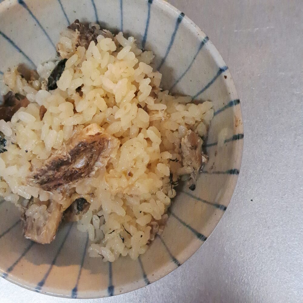 炊飯器に いつも通りの水加減のお米の上に、この「素」とサバ缶一缶を入れて「炊飯」ボタンを押すだけ。