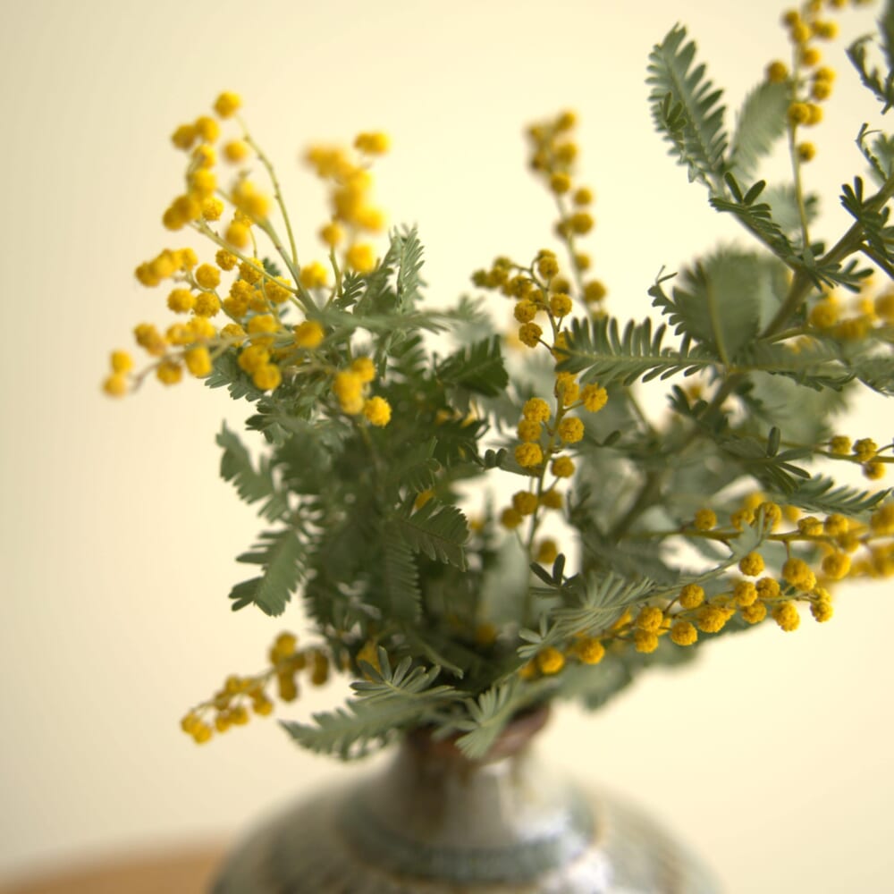 春の訪れを感じるこの季節、お花屋さんでふわっと咲くミモザを見かけて思わず購入。