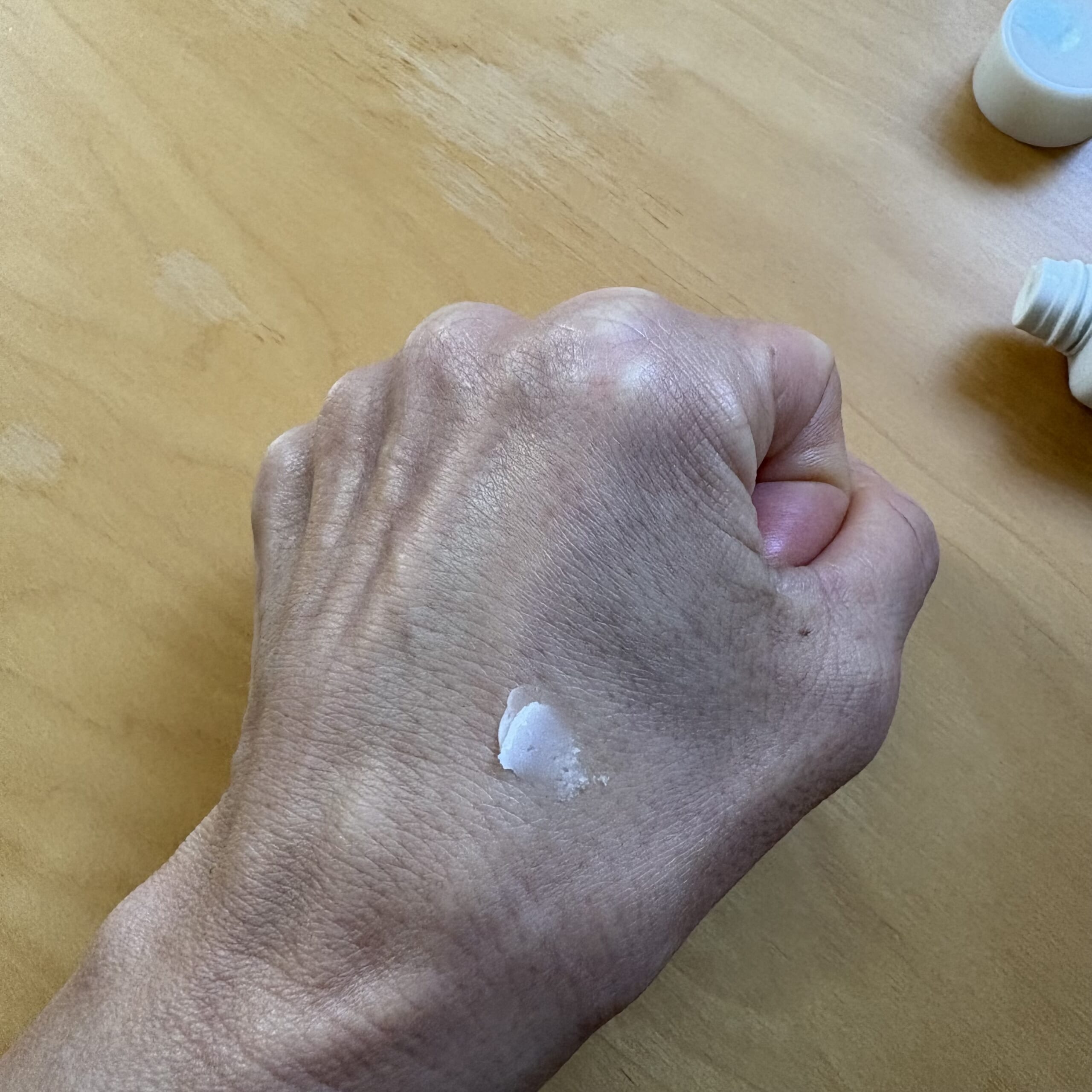 こっくりしたバームなので少量を塗り伸ばすと良いかも。