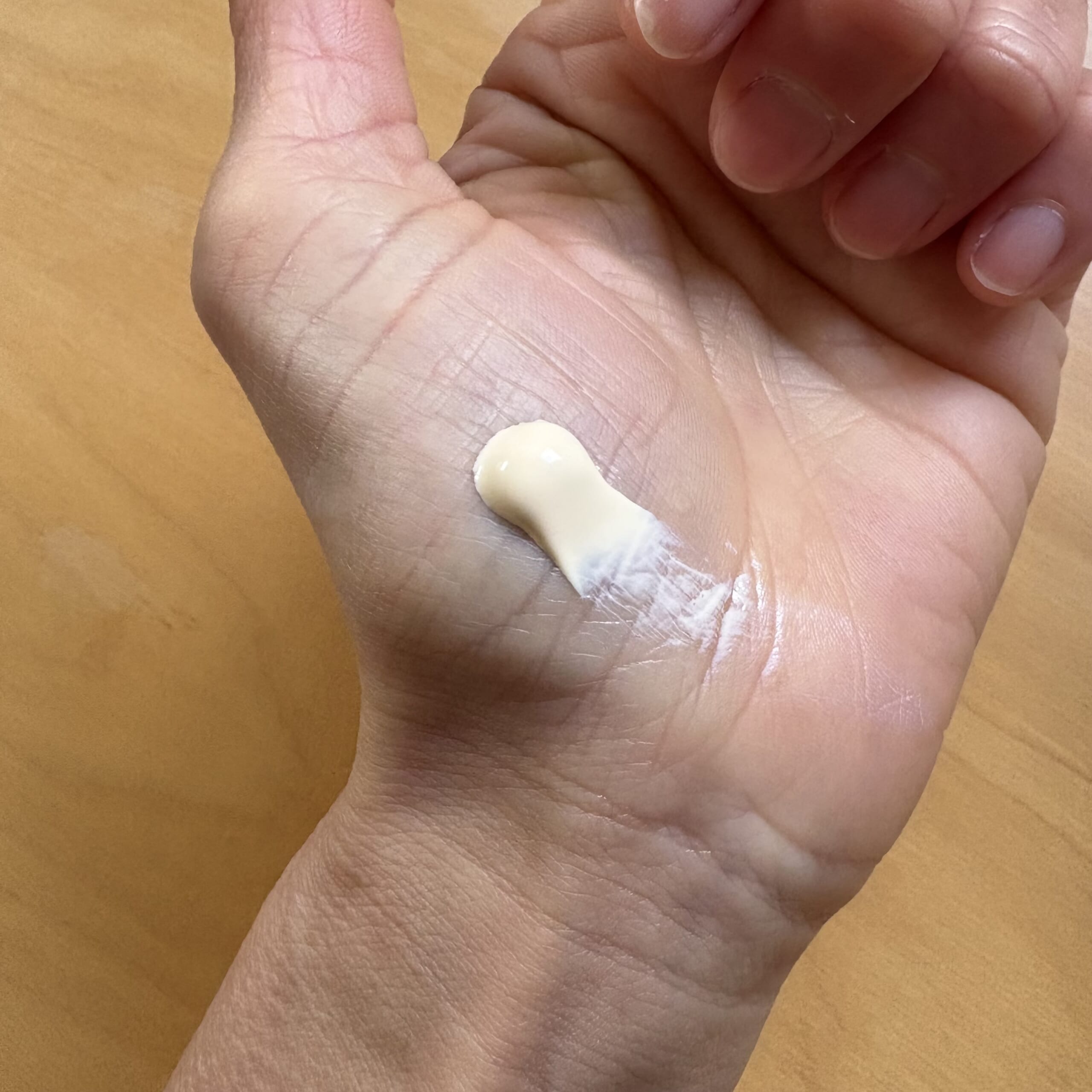 クリーム状で、出すと白くなくて黄味がかった色。