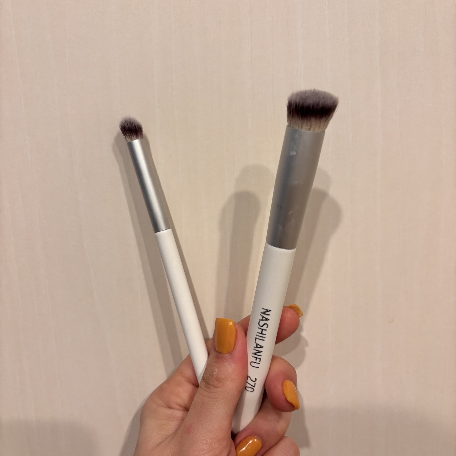 今回は大きめとセットで1500円程のこちらを購入。大きいファンデーションブラシは艶感を頬骨や鼻の上に出すのに使ってます。ブラシは使い分ける。改めて、当たり前のことに納得しました。