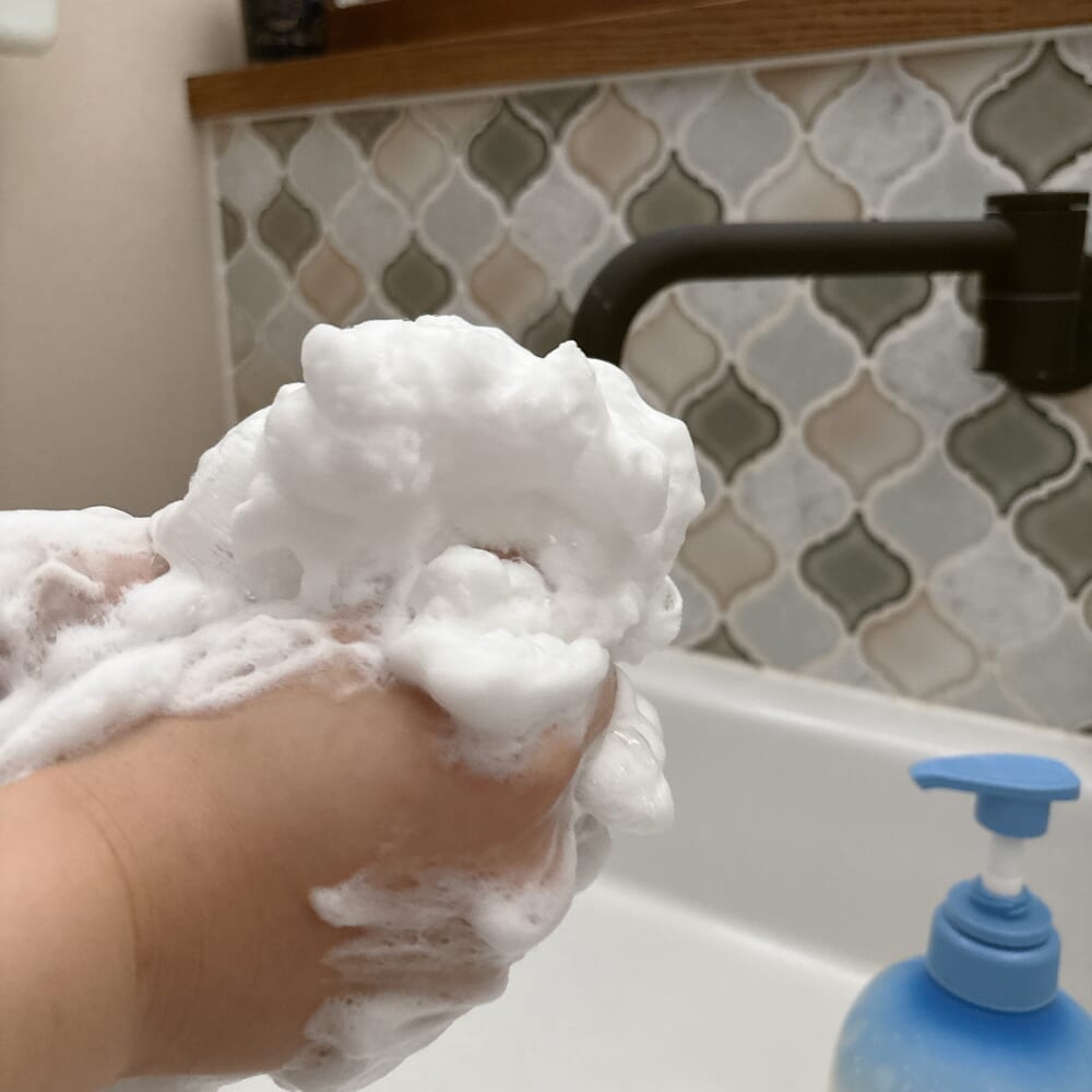 液体タイプは自分で泡立てるから泡が濃密。少量の液体でもっこもこの泡を自分で作れるのがいい。