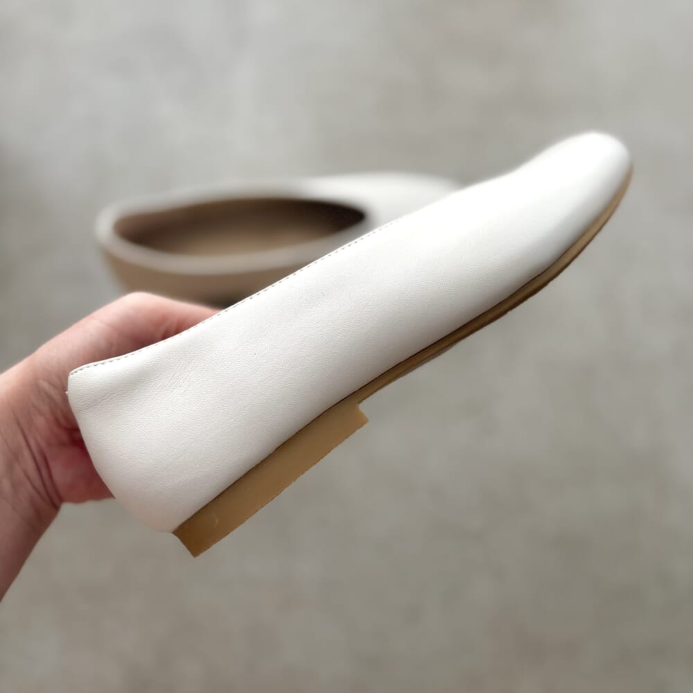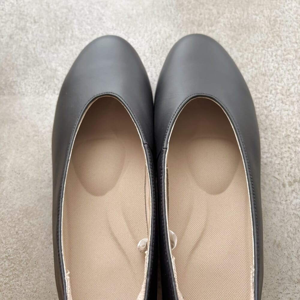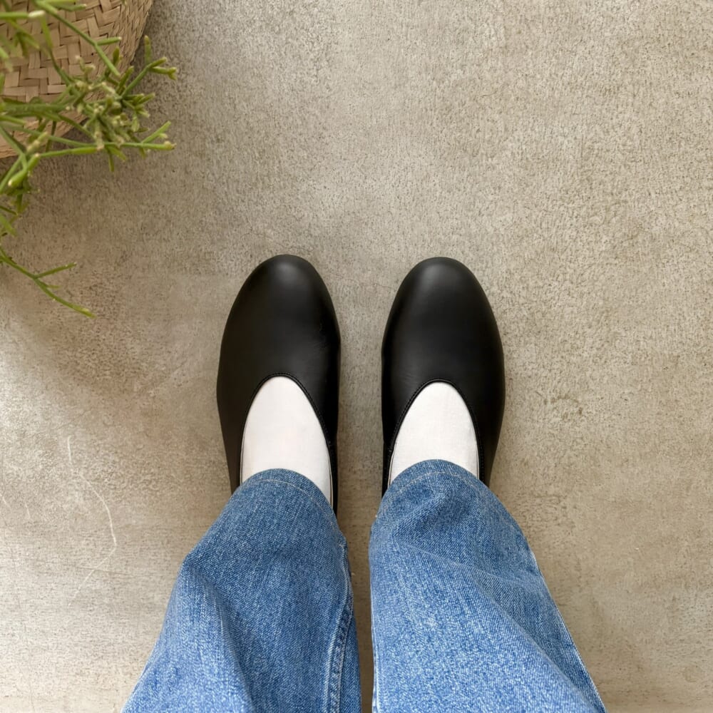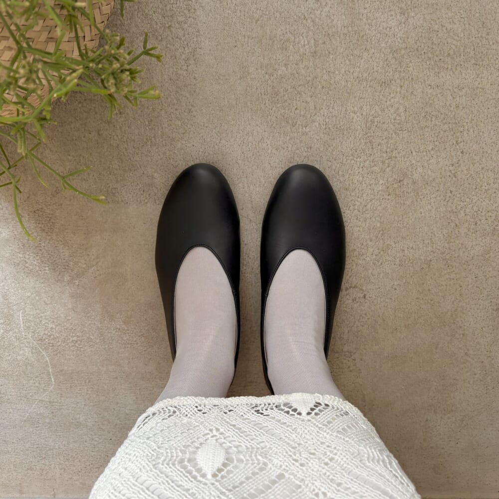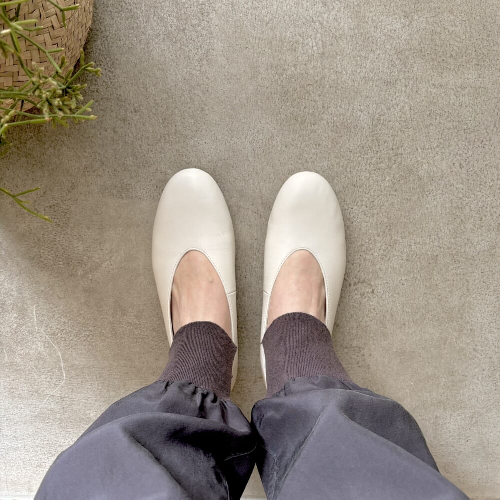 羊皮の質感や、丸いつま先とすっきりしたフォルム、見れば見るほど好みのフラットシューズです。