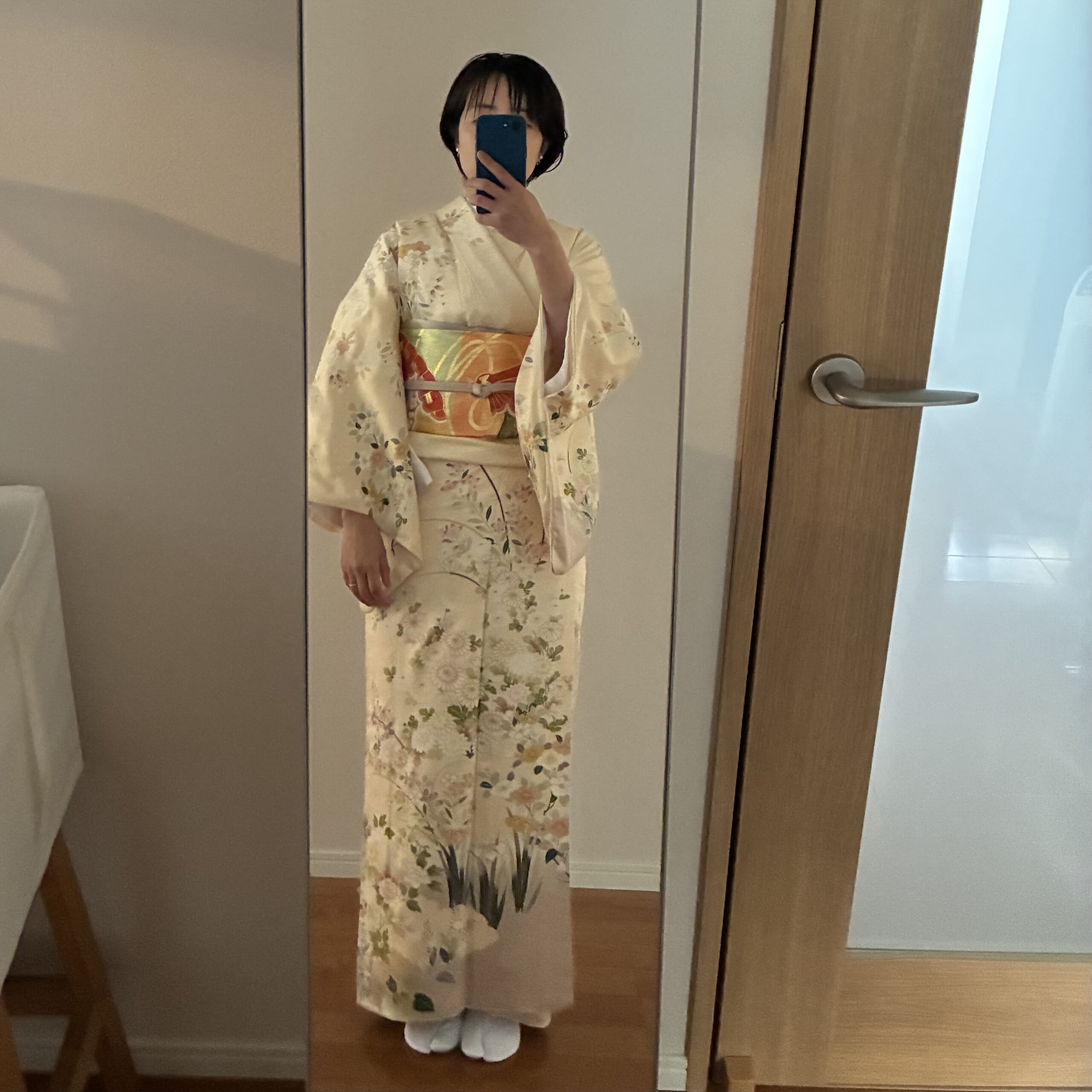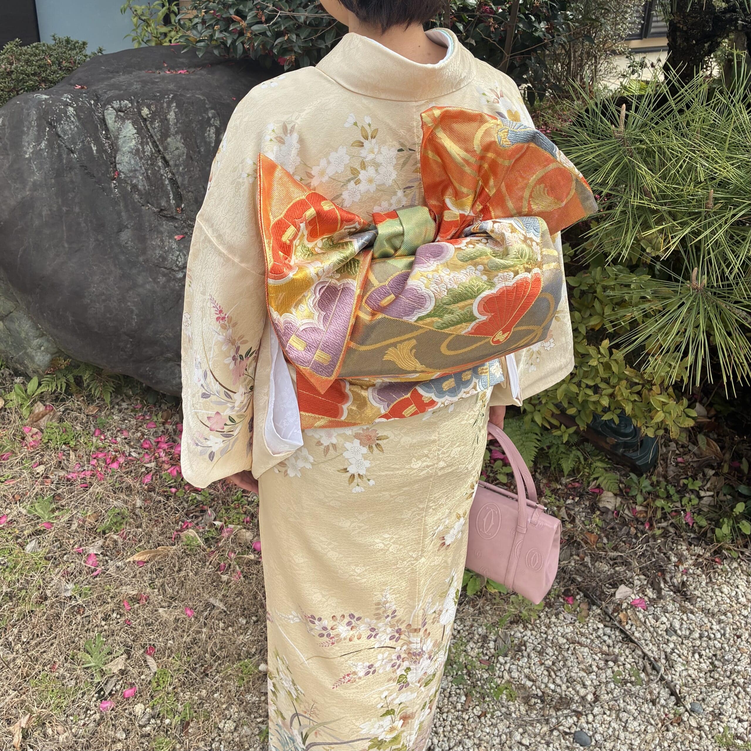トイレは大変だし、慣れないからだんだん苦しくなって内心早く脱ぎ捨てたい…という気持ちになりましたが(着るのに1時間かけたのに脱ぐの数分。帯をほどくのも夫にお願いしないとできなかった)背筋は不思議と伸びて姿勢はよくなるし、いろんな人から「お似合いだよ!」と褒められる。