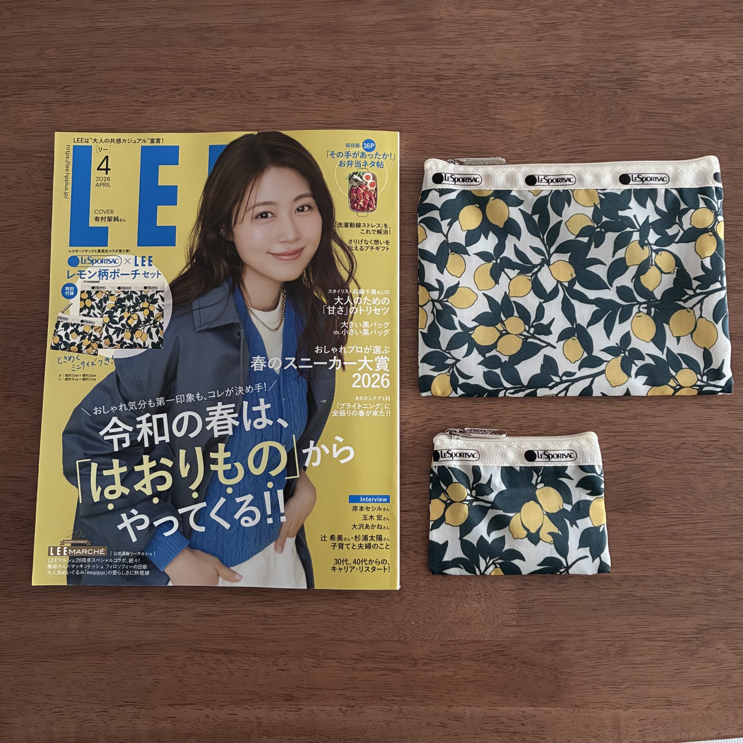 今月号(4月号)のLEEには、レスポートサックさんの可愛いポーチが2点付いてます。