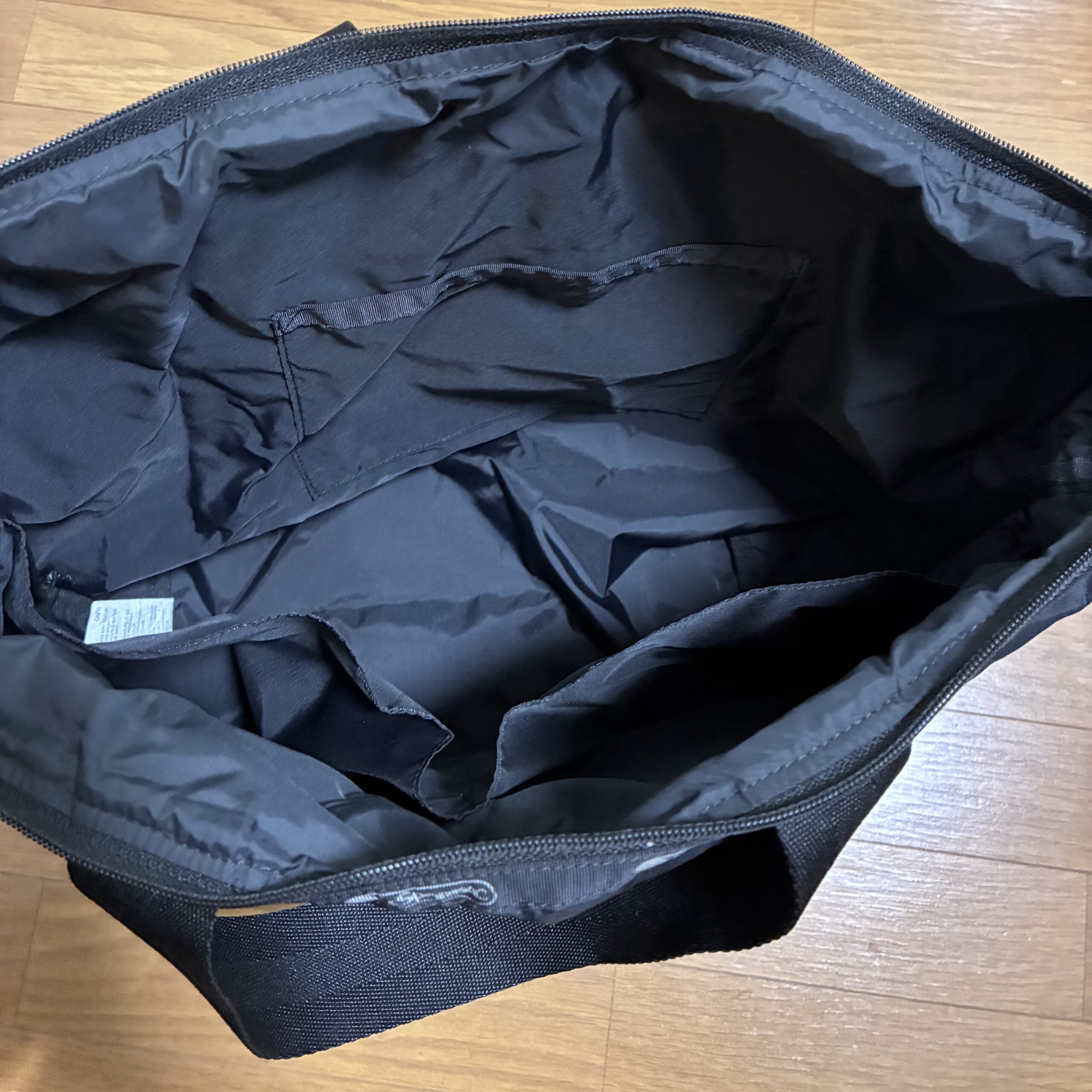 バッグ上部は、ファスナーで完全に閉まります。