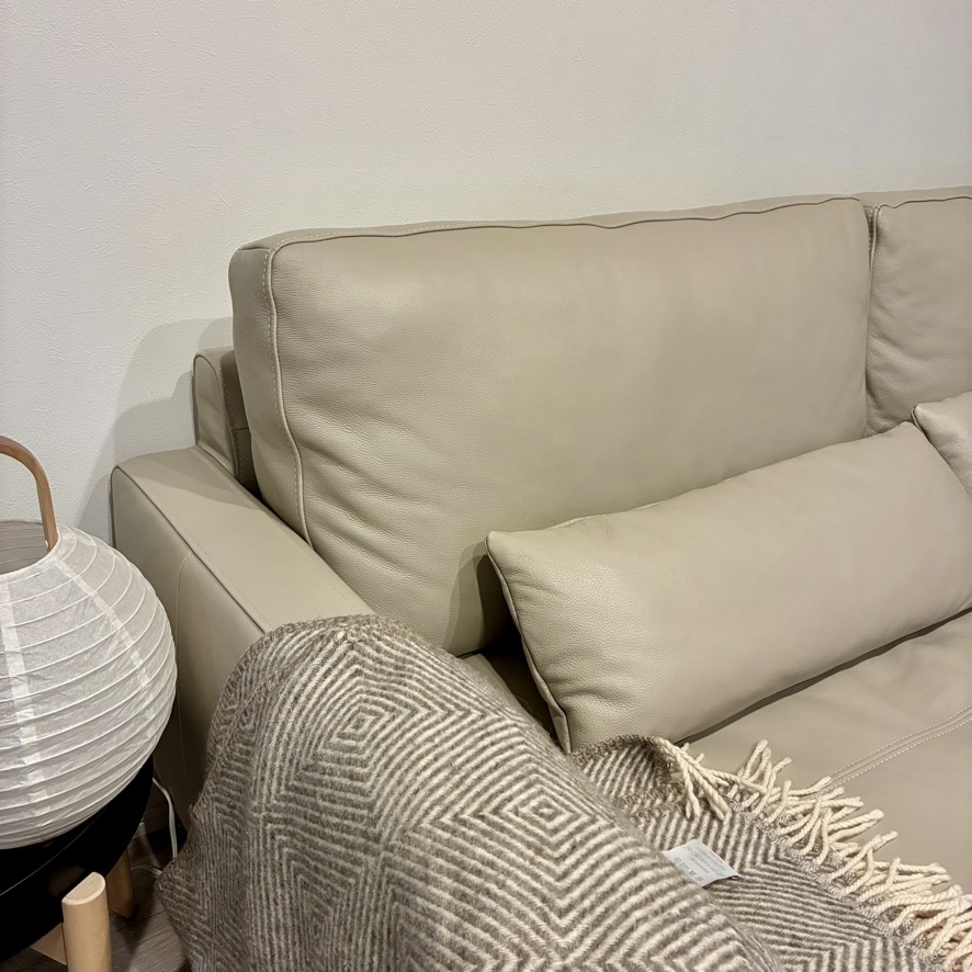 細長いクッション2つも付属品です。ちなみにオットマンも購入したら予算は少しオーバーしてしまいましたが、長く使うものなので妥協しませんでした!ただいま入荷待ちで来月届く予定なので楽しみです。これから長い年月、どうぞよろしくね。