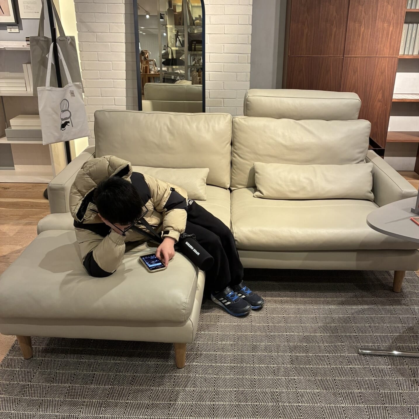 店頭でくつろぎまくっている息子、すみません…でもある意味とてもリアルで、その姿を見てピンときたのもまた事実笑(写真撮影・掲載許可を得ています)