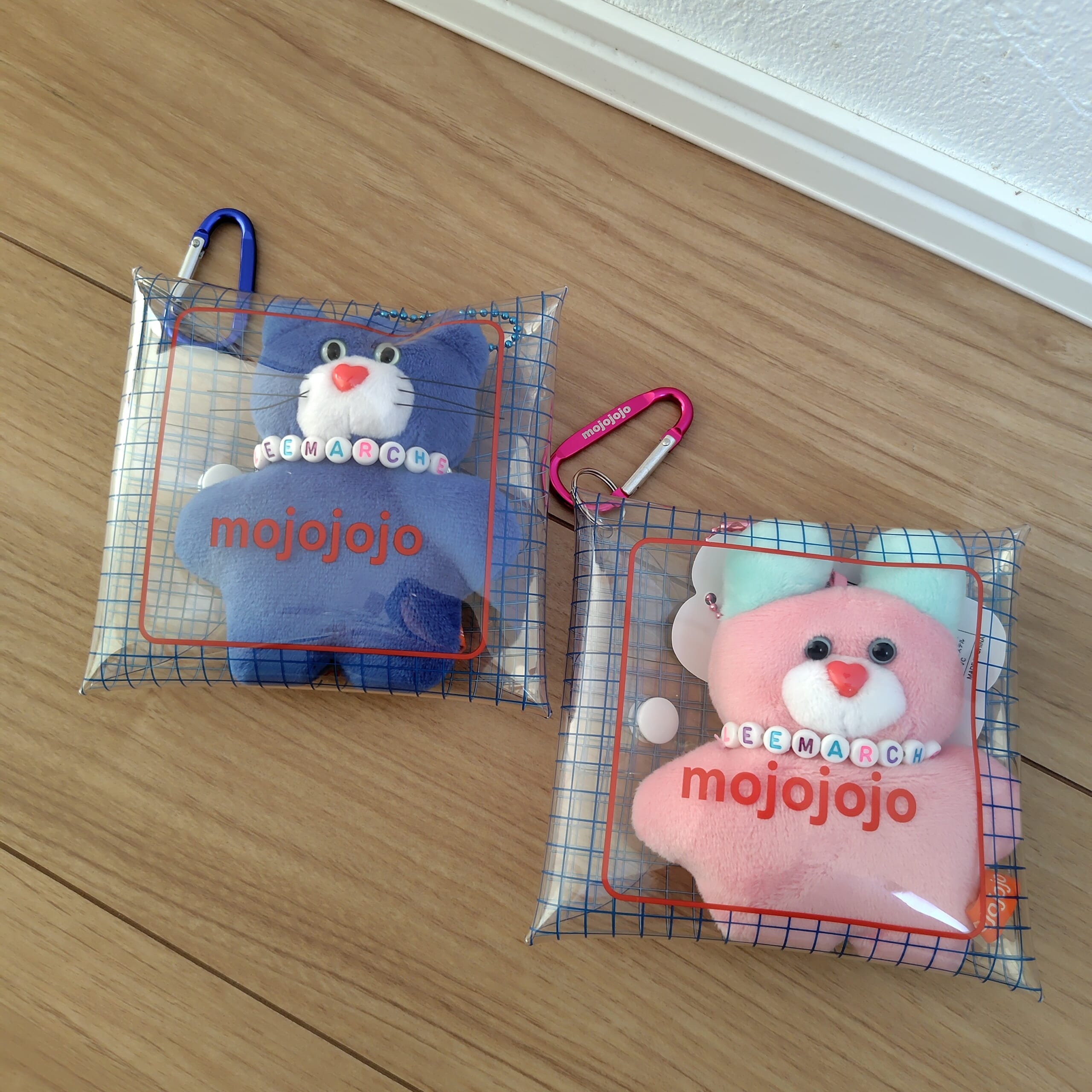 クリアポーチに入ってるのも可愛いし、ぬいぐるみ単体でつけるのもかわいい。