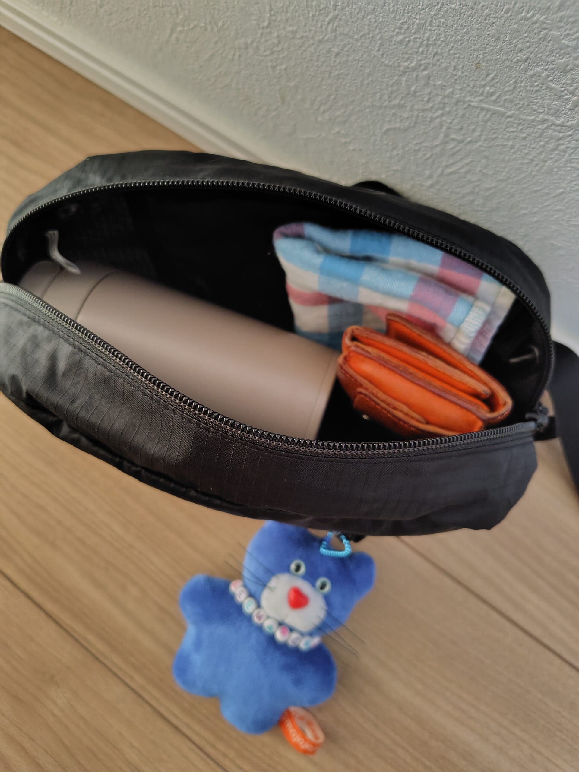本来はウエストポーチとして使うアイテムですが、私はショルダーとして使う予定。