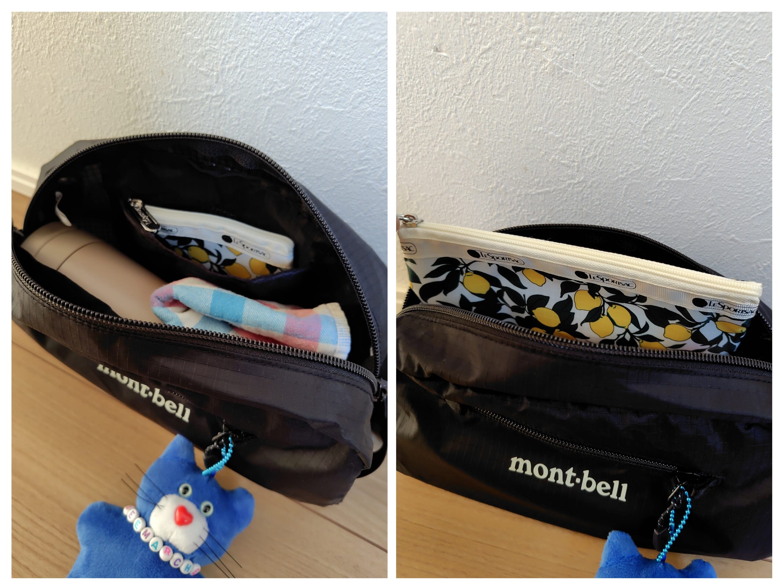 大きいサイズは少しはみ出しますが、このポーチ自体がクタッとした柔らかい素材なので、
