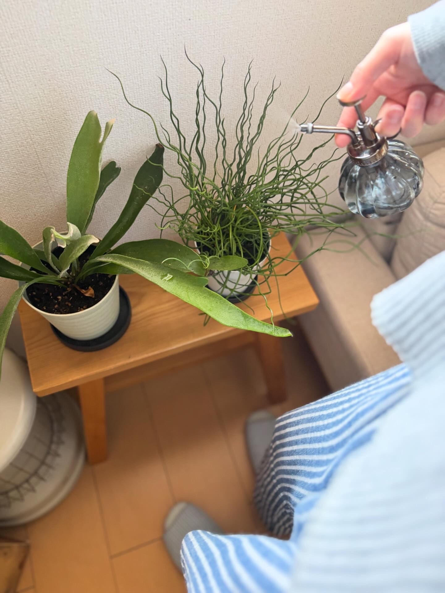水をあげながら葉っぱの様子を見たり、新しい芽が出ているのを見つけたり。