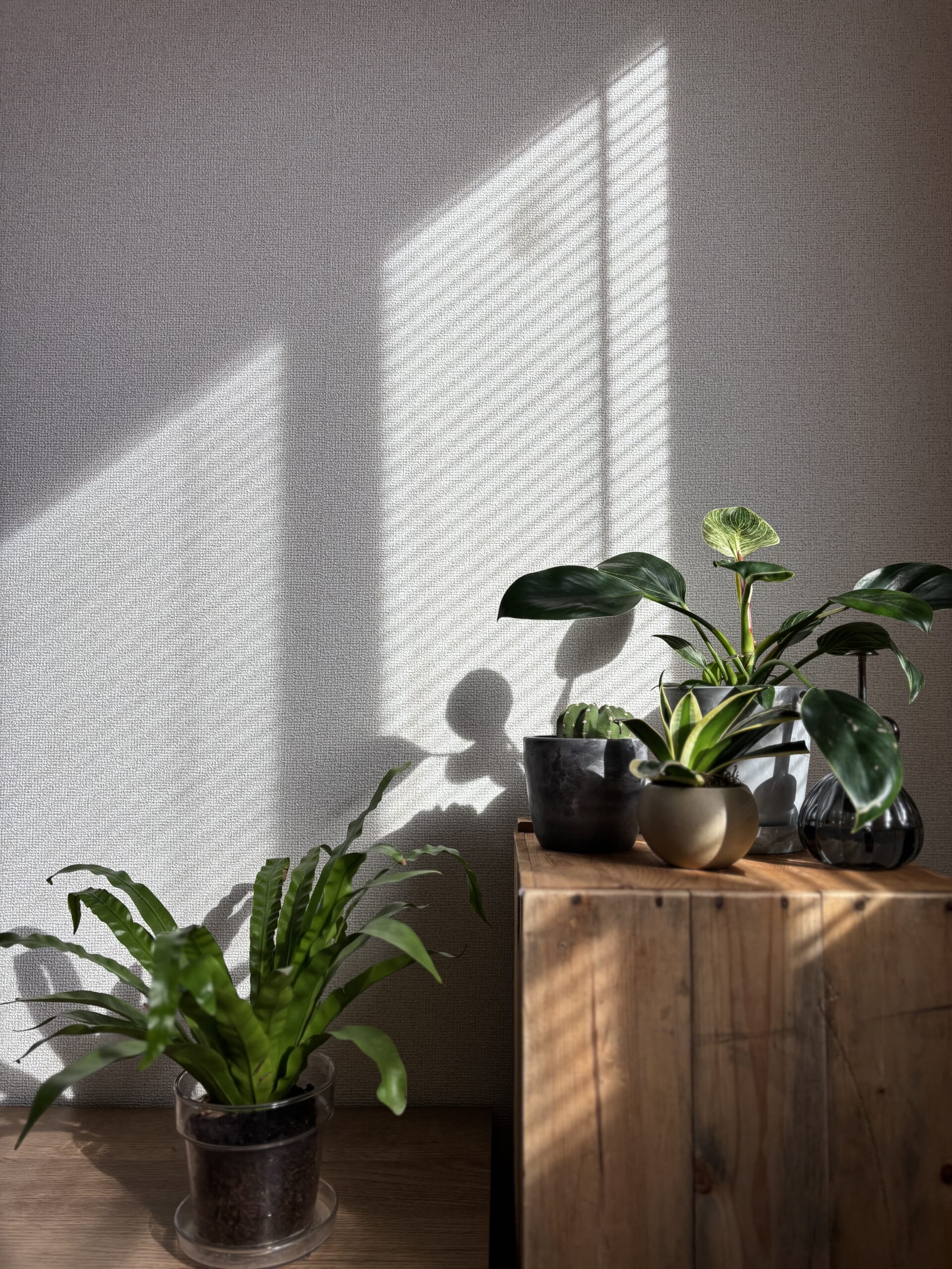 窓辺や棚に置ける小さなグリーンがあるだけで、