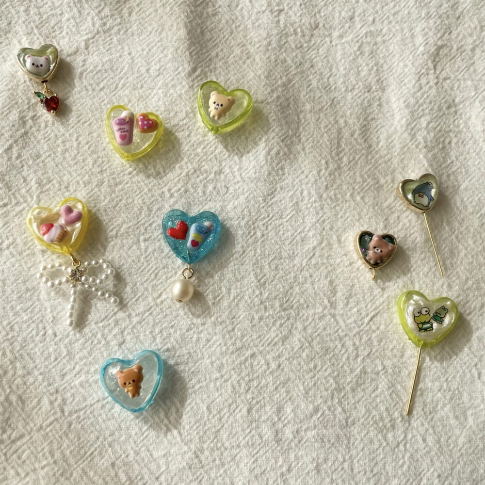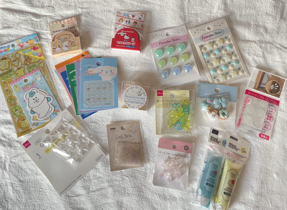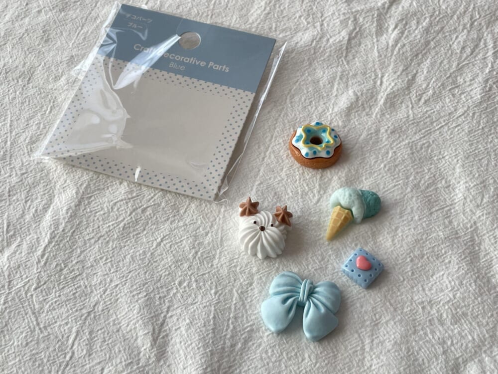 こちらダイソーをふらふらしている時にみつけたデコパーツ。色味も素材も豊富にありました。