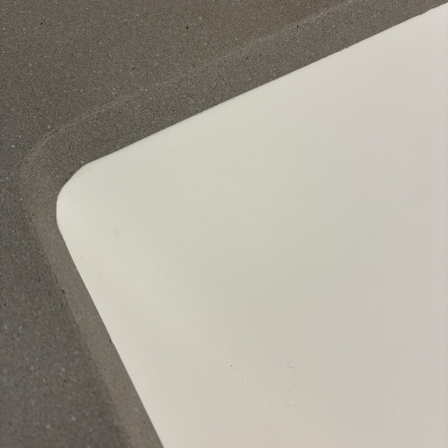 洗面ボウルでこだわったのは、継ぎ目のないフラットな仕様。おかげで黒ずむことなく掃除も楽ちん。