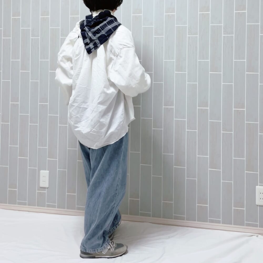 春らしくYAECAのシャツに無印良品のデニムを合わせて。