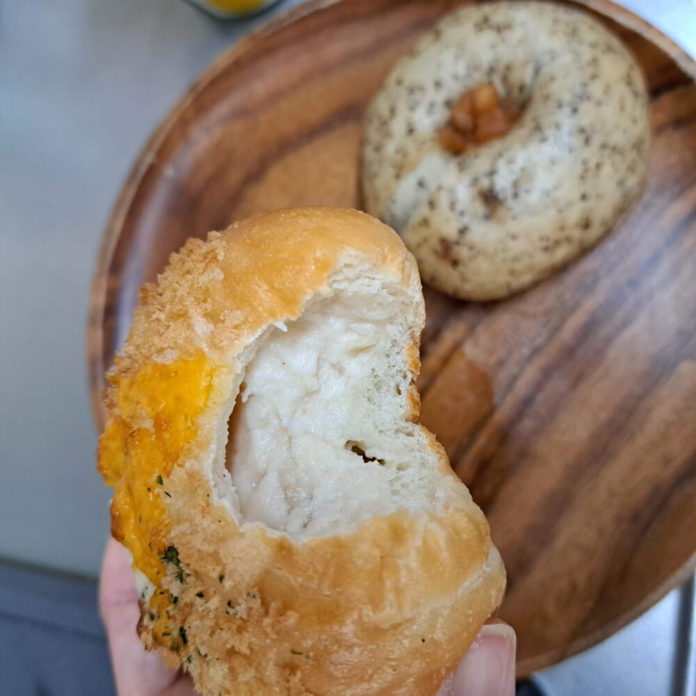 私が小食っていうのもあるとは思いますが、お昼にベーグルふたつでお腹パンっパン。