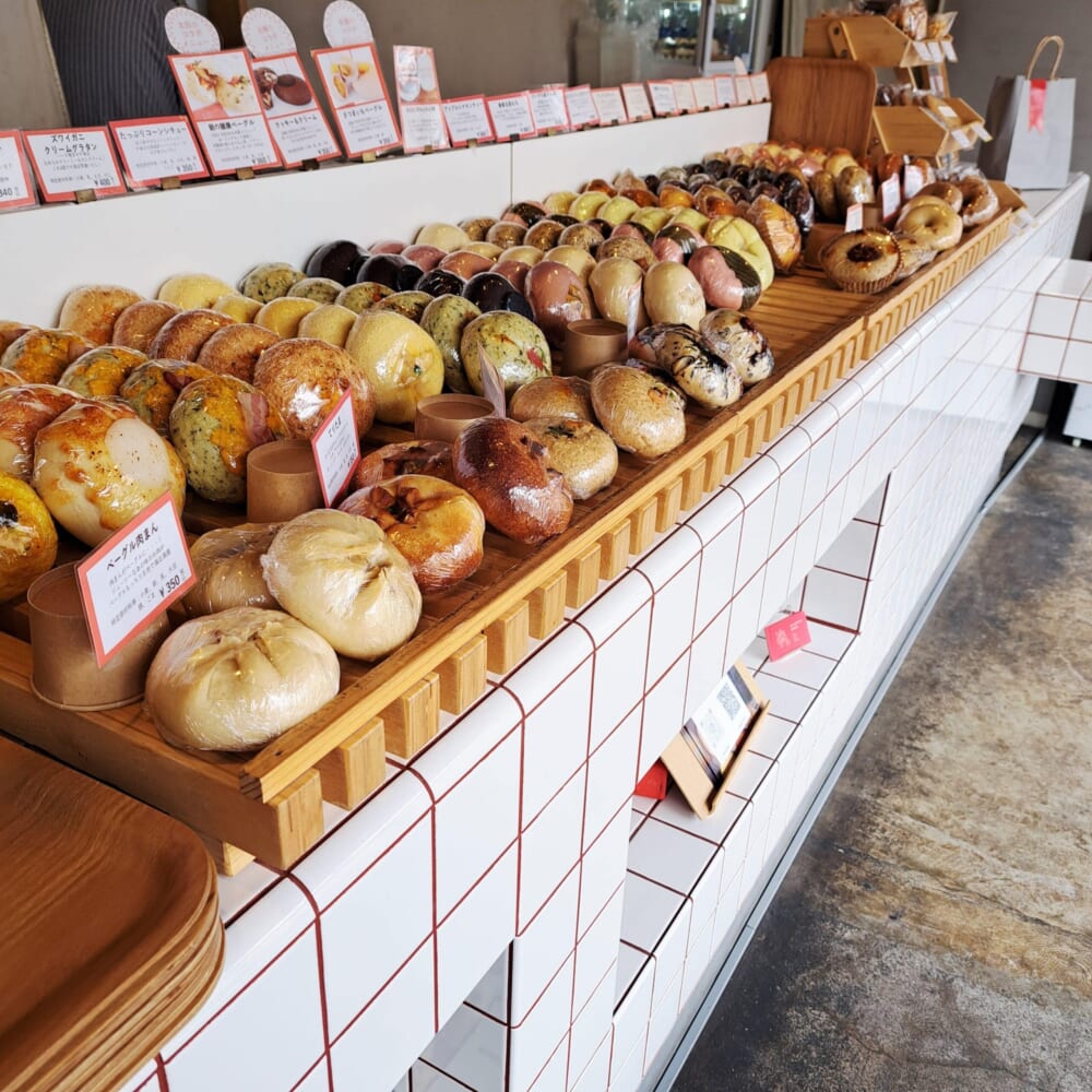 かわいい内装に、ベーグルがずらり。どれにしようか、目移り、目移り。