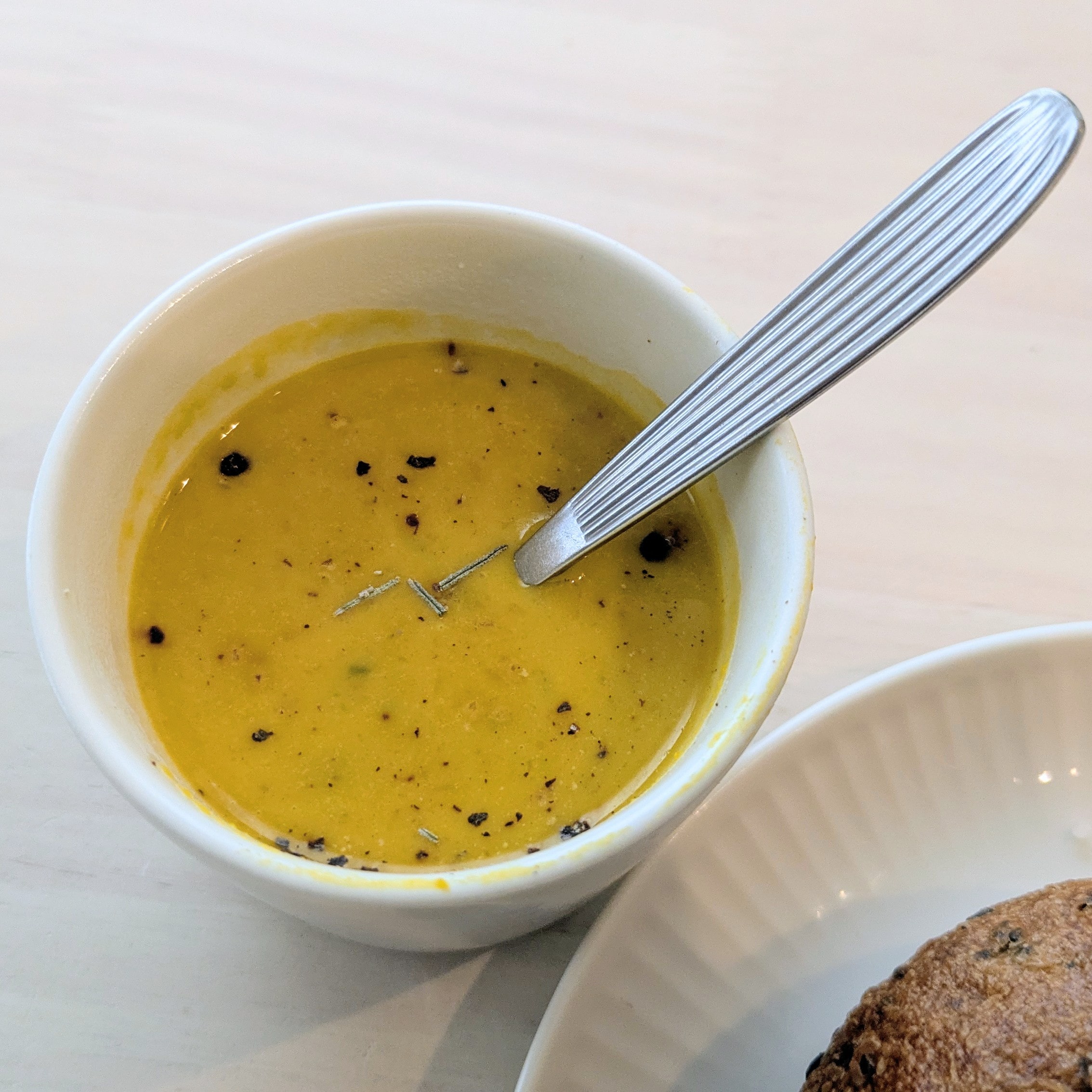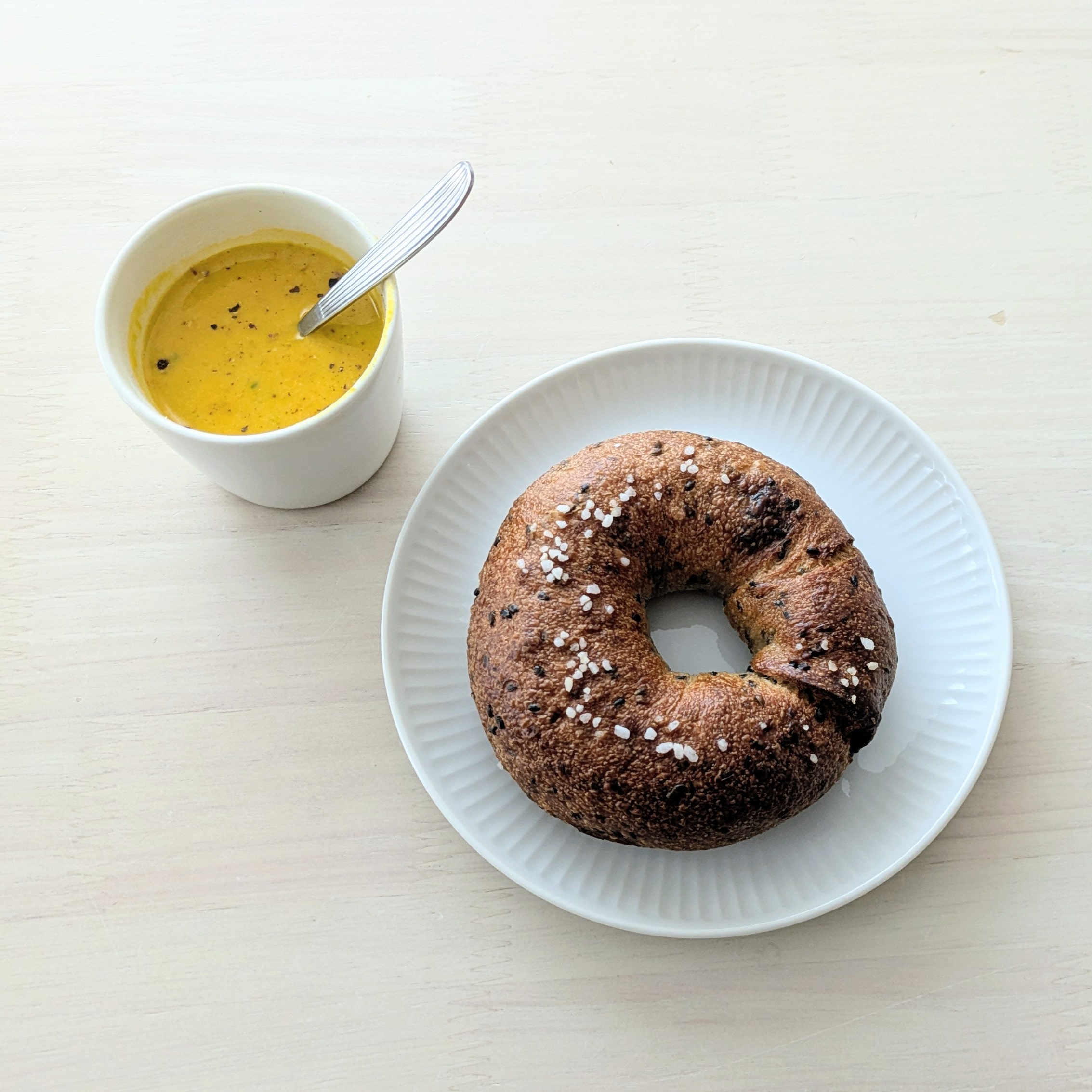 お供は、ハマ続けている『CITY BAKERY』のごま塩ベーグル。このベーグルの塩気と、スープの甘みが合う!!!