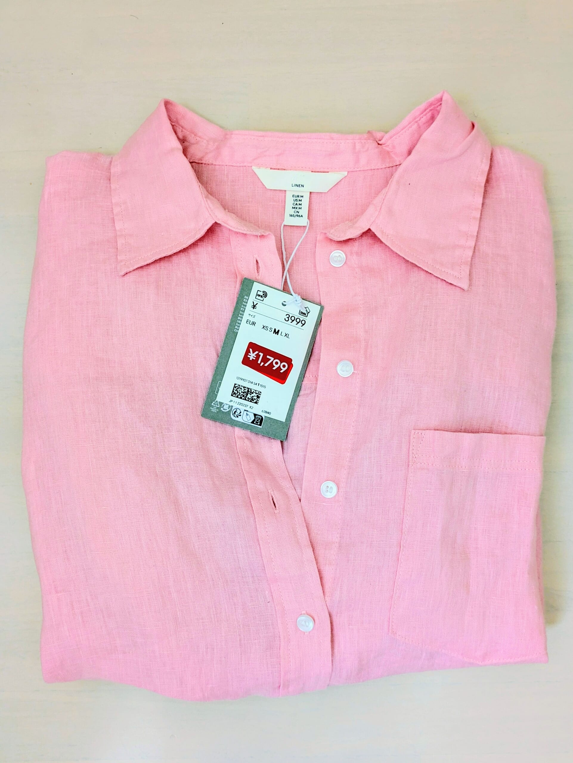 ふらっと立ち寄った【H&M】でピンク色が素敵なシャツを見つけ、しかもお値下げされており即決で購入しました