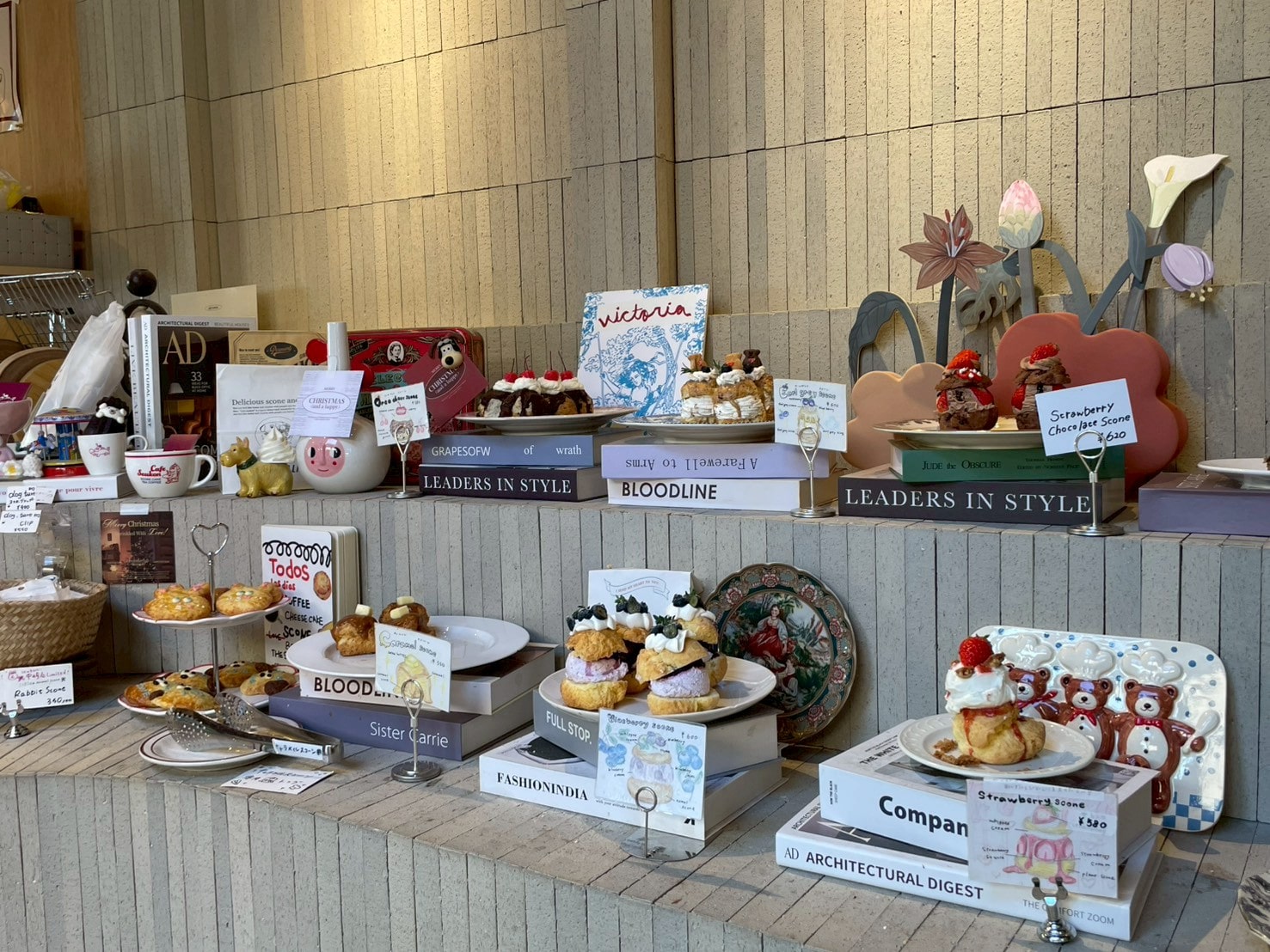 最後は、韓国風のインテリアがとっても可愛い『カフェスコーン 中崎店』へ。店内には美味しそうなスコーンがずらりと並んでいて、どれにするか迷ってしまうほど。