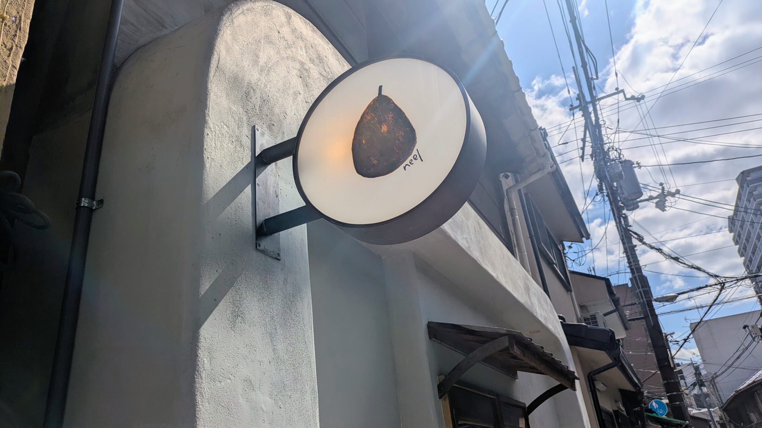 食後のデザートを求めて、中崎町の路地裏にある『neel中崎町』へ。洋梨のロゴが目印の、中崎町らしい古民家の可愛い、落ち着いた雰囲気のカフェ。