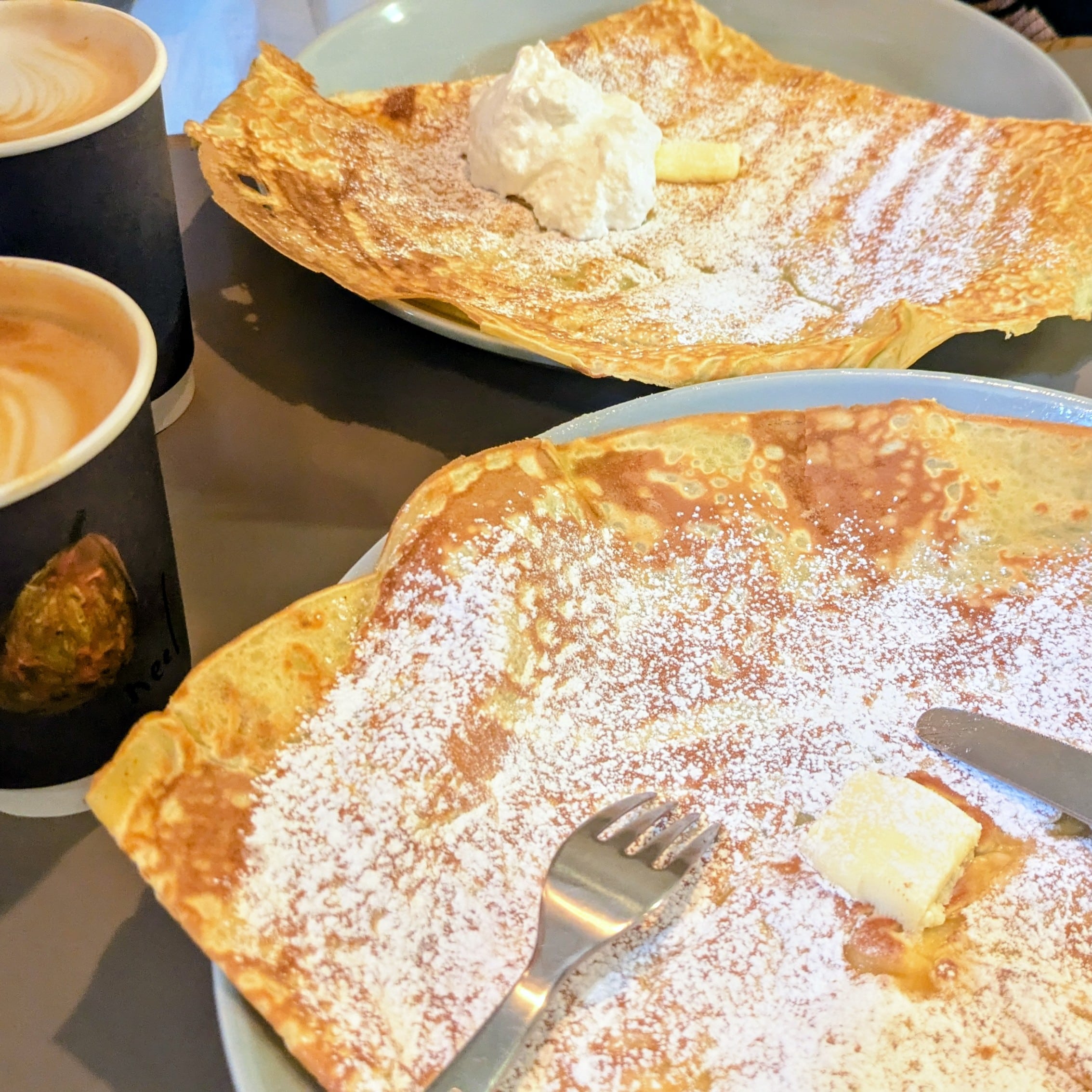 オーダーしたのは、シンプルな「シュガバターークレープ」外側はパリッと香ばしく、中はモチモチ。