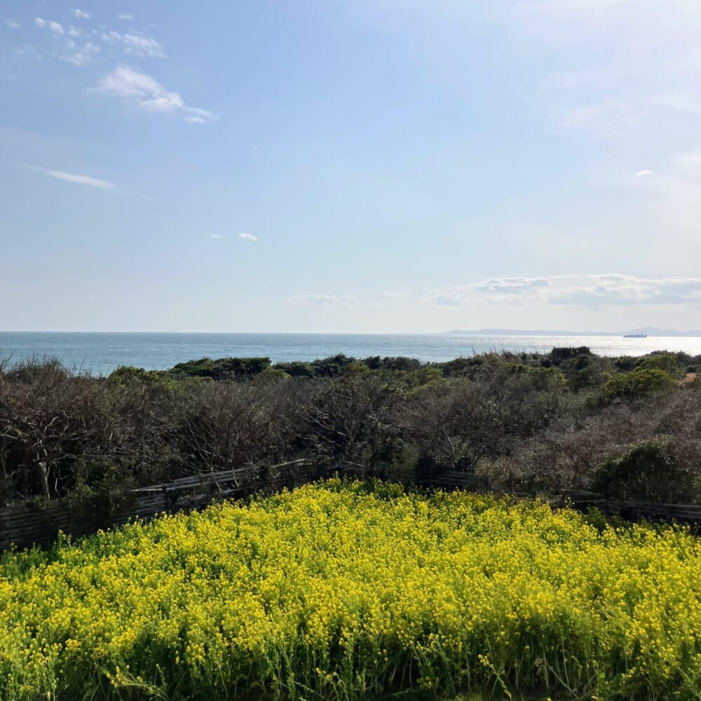 太平洋の見晴らしと菜の花のコラボ