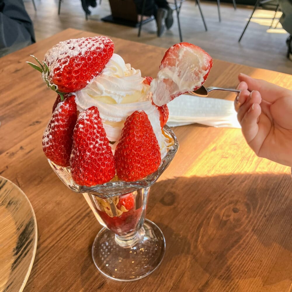 イチゴ農園カフェの至福タイム、旬を味わう特製イチゴパフェ