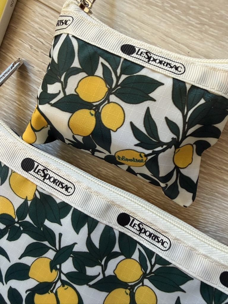 レスポのテープやチャックの金具にも嬉しいロゴ入り、レモンにもロゴを発見しました♡
