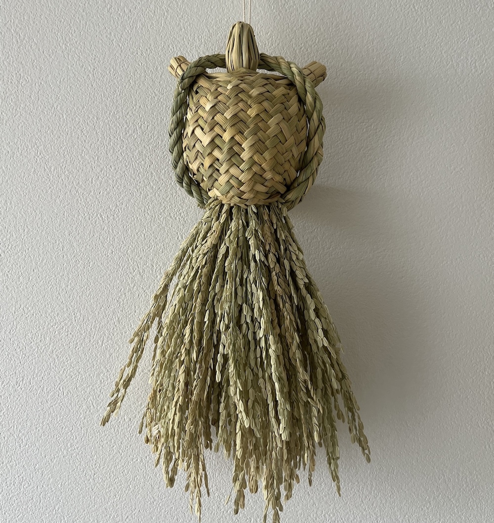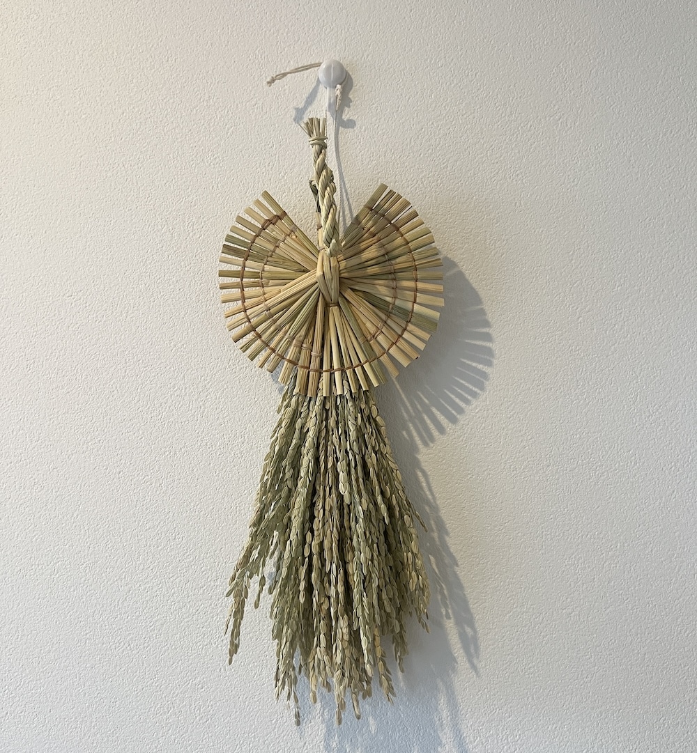 しめ縄飾りは作り手さんによって、生き物のふっくら加減や籾(もみ)の長さが違って、今年はどんな子をお迎えしようかなと眺めるのも年始の愉しみになっています。こちらはメルカリに出品されていた作り手さんのものです。