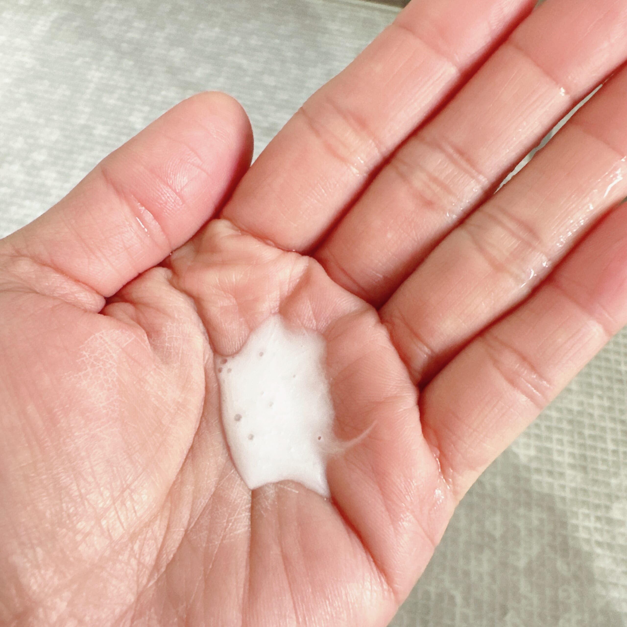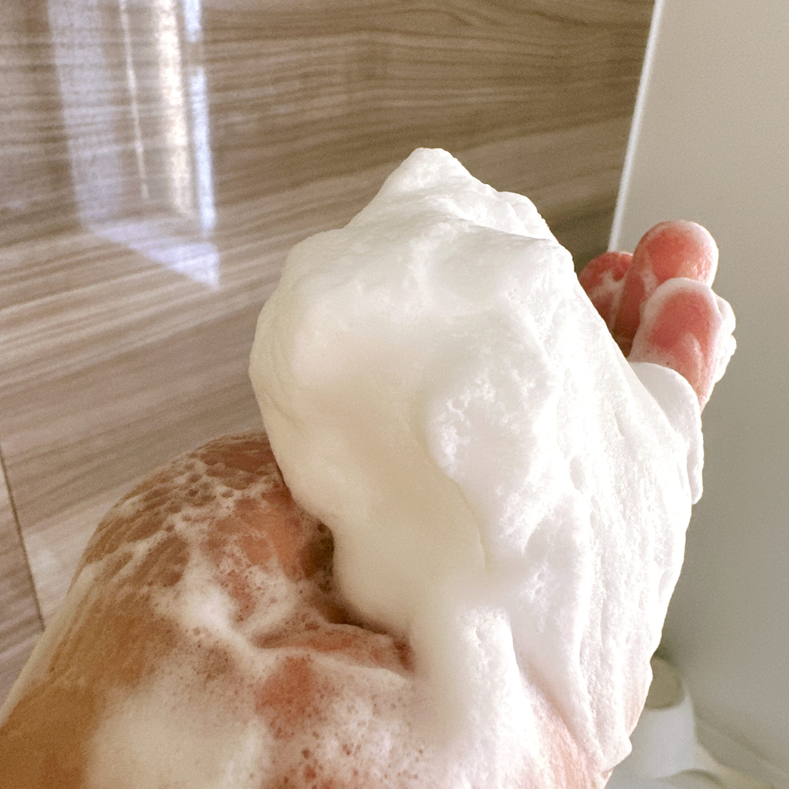 液体タイプを泡立ててみましたが、この量でこんなにもこもこになりました!