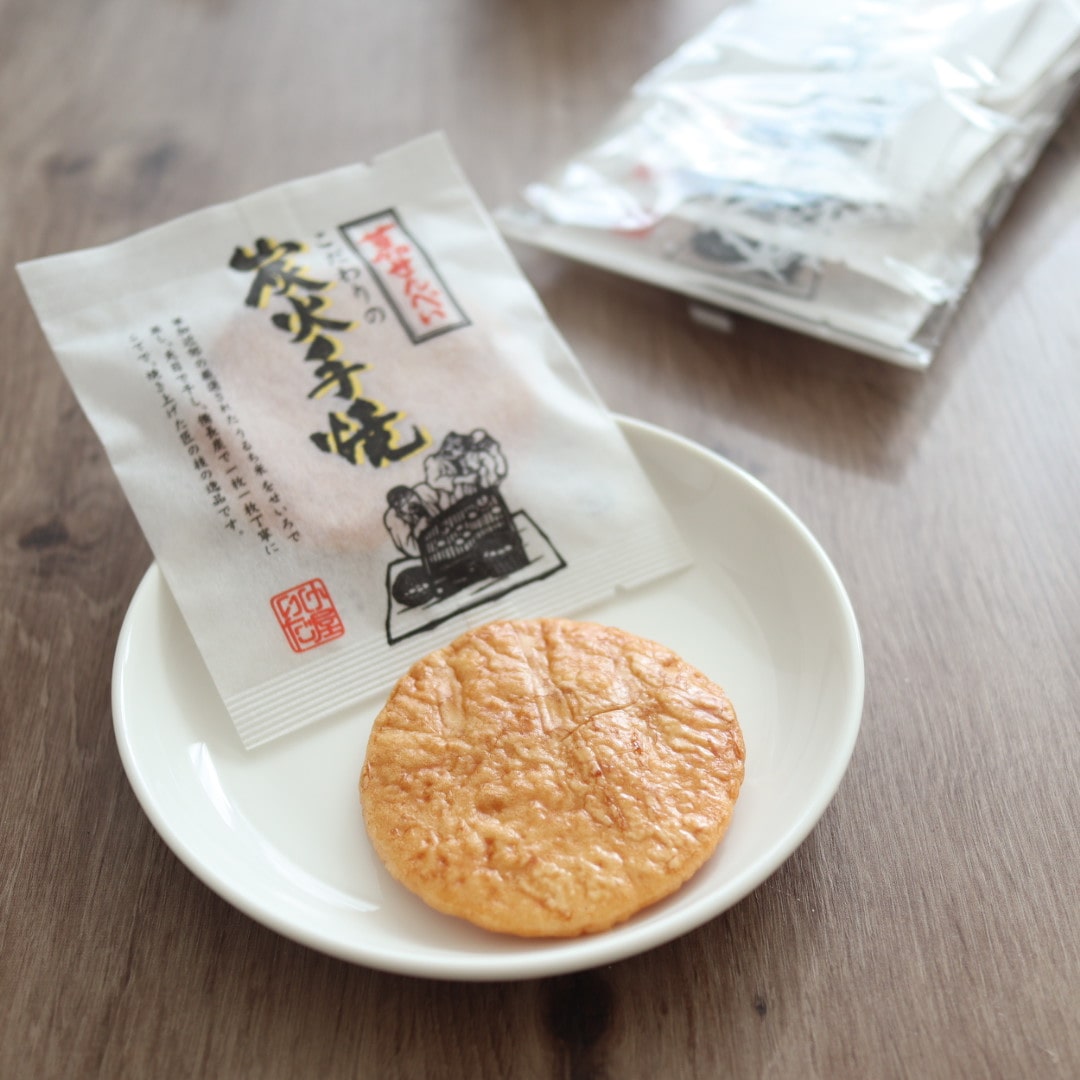 草加近郊の厳選されたうるち米をせいろで蒸し、天日干し、備長炭でお店の職人さんが1枚1枚焼き上げた、本物の炭火手焼きせんべいがいただけます!