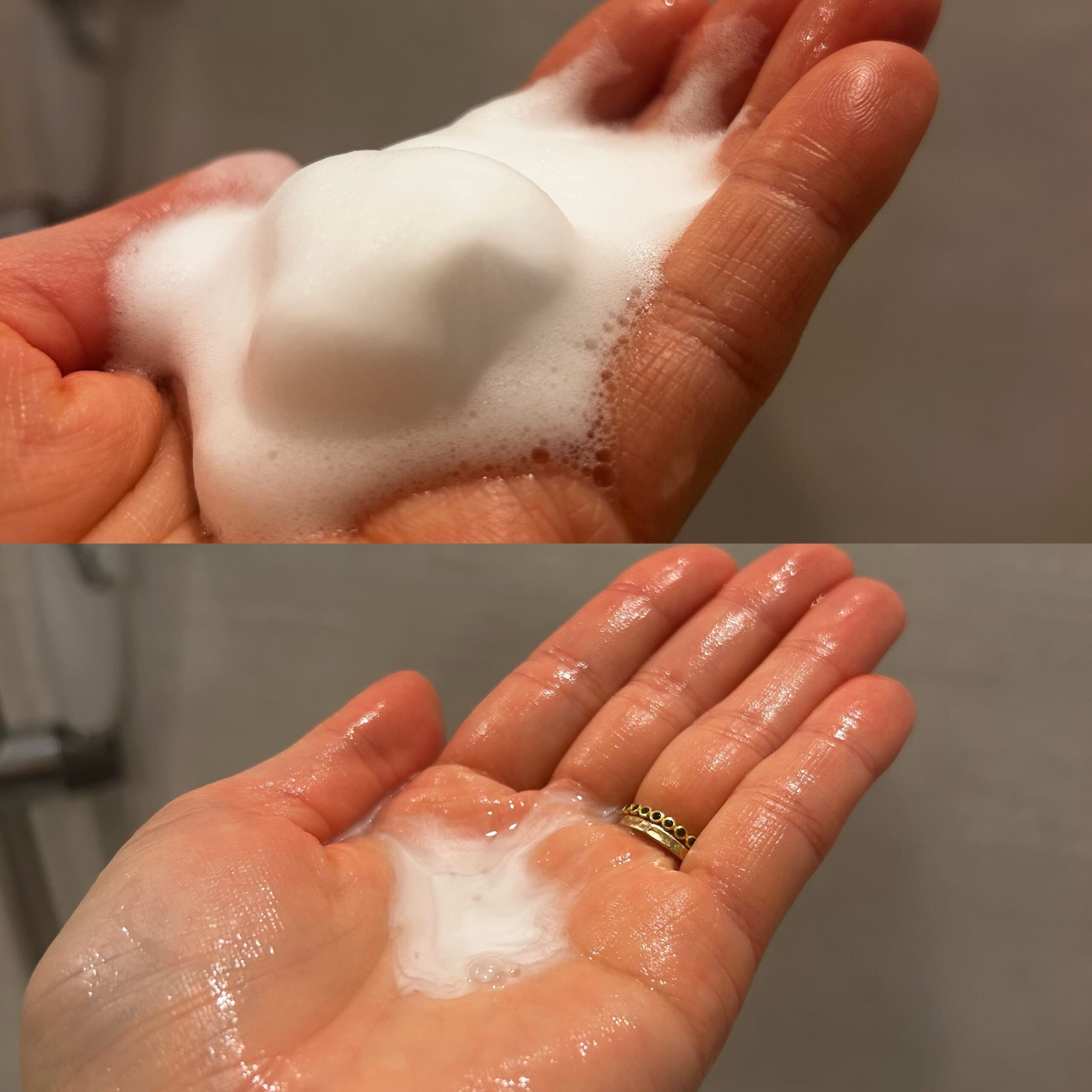 大人は、液体タイプ「マー&ミー ピュアスキン ボディソープ」を使用していますが、ボディタオルで泡立てるとふわっふわに。両方とも柔らかい洗い心地なので親子で気に入っています♪